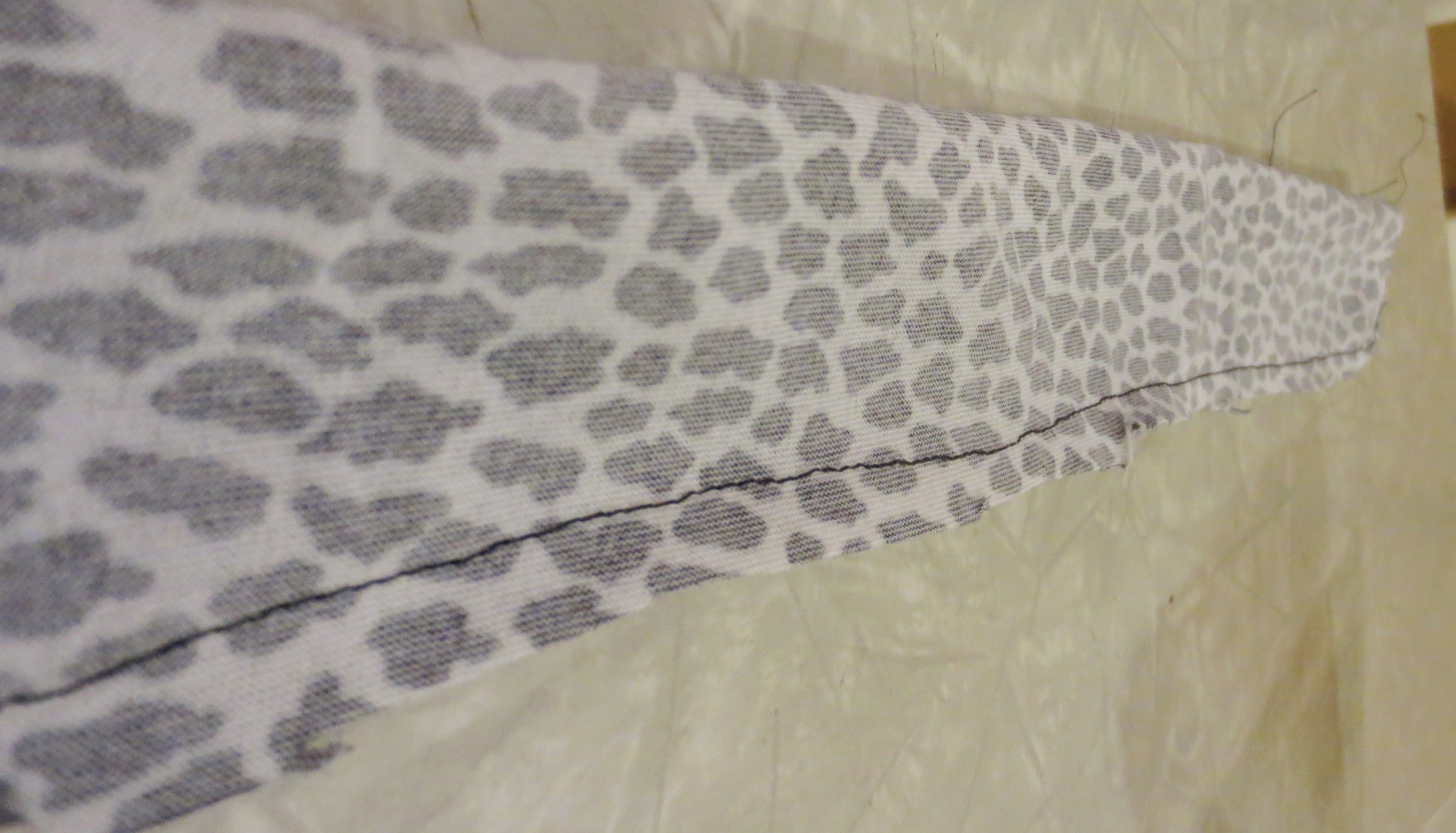 After dinner, I dashed to the fabric bin and dug out these animal-print (cheetah? Las Vegas snow leopard?) curtains I had made back in the day–way back. We’re talking at least three apartments and one boyfriend ago. They were long, fabulous and forgotten. And best of all, I could cut them to my exact specifications.