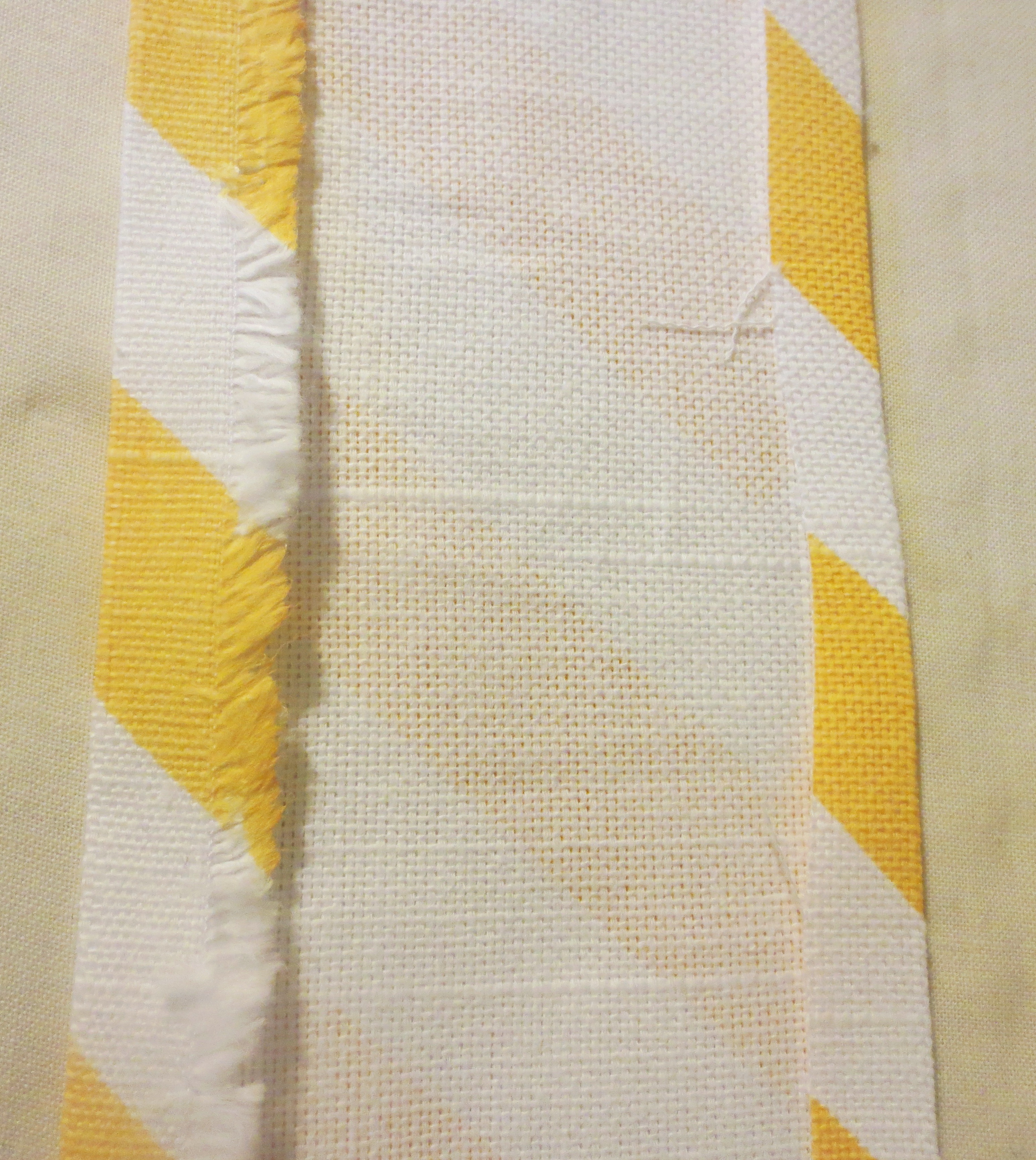 STEP 2) Fold over so the fabric is inside out. Pin the raw edges together and sew a seam along the entire length of the fabric. (ACTUALLY, DON’T DO THIS. SEE STEP 3)