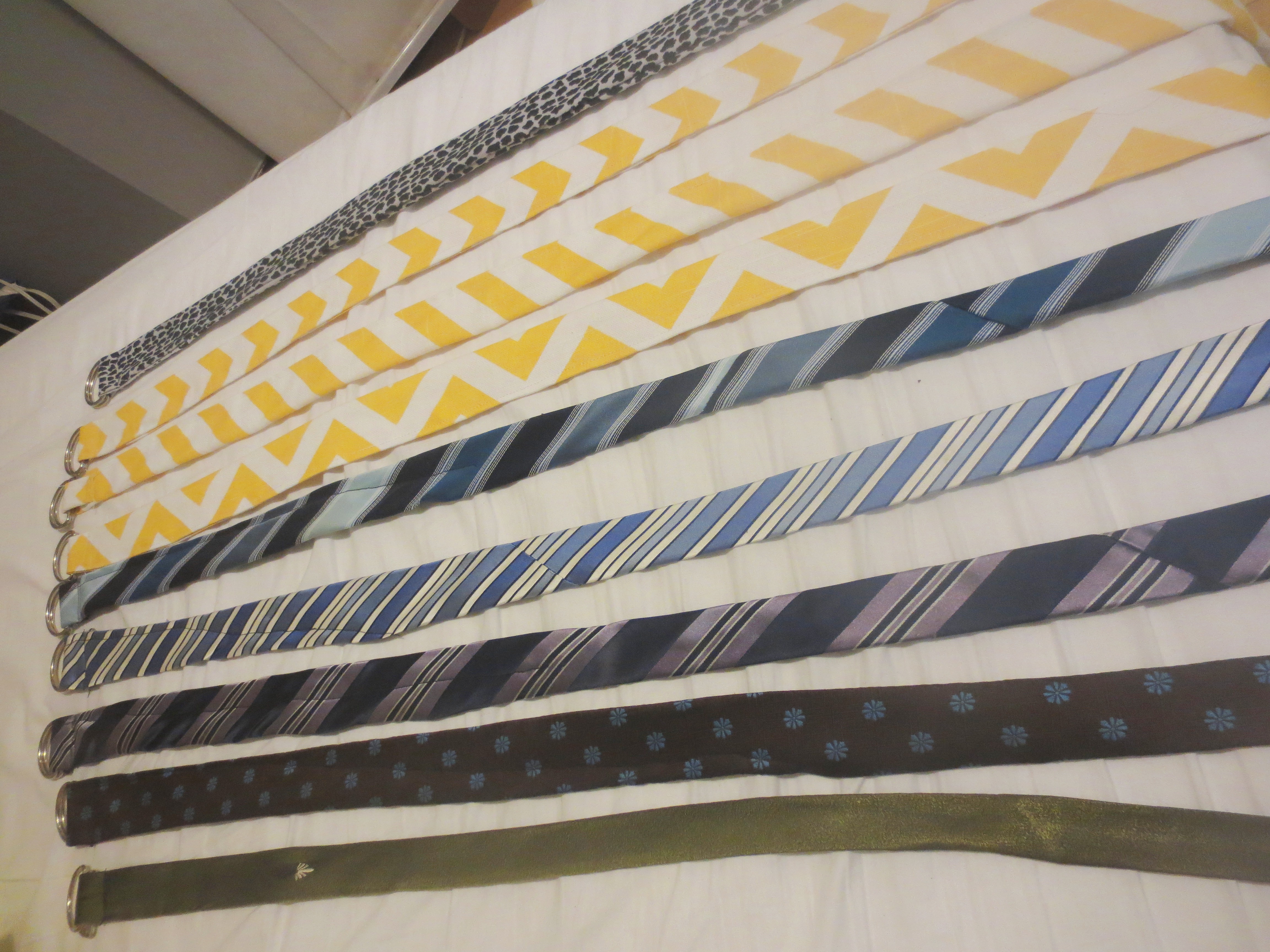 Neckties, Curtains and Scraps from your upholstered headboard.