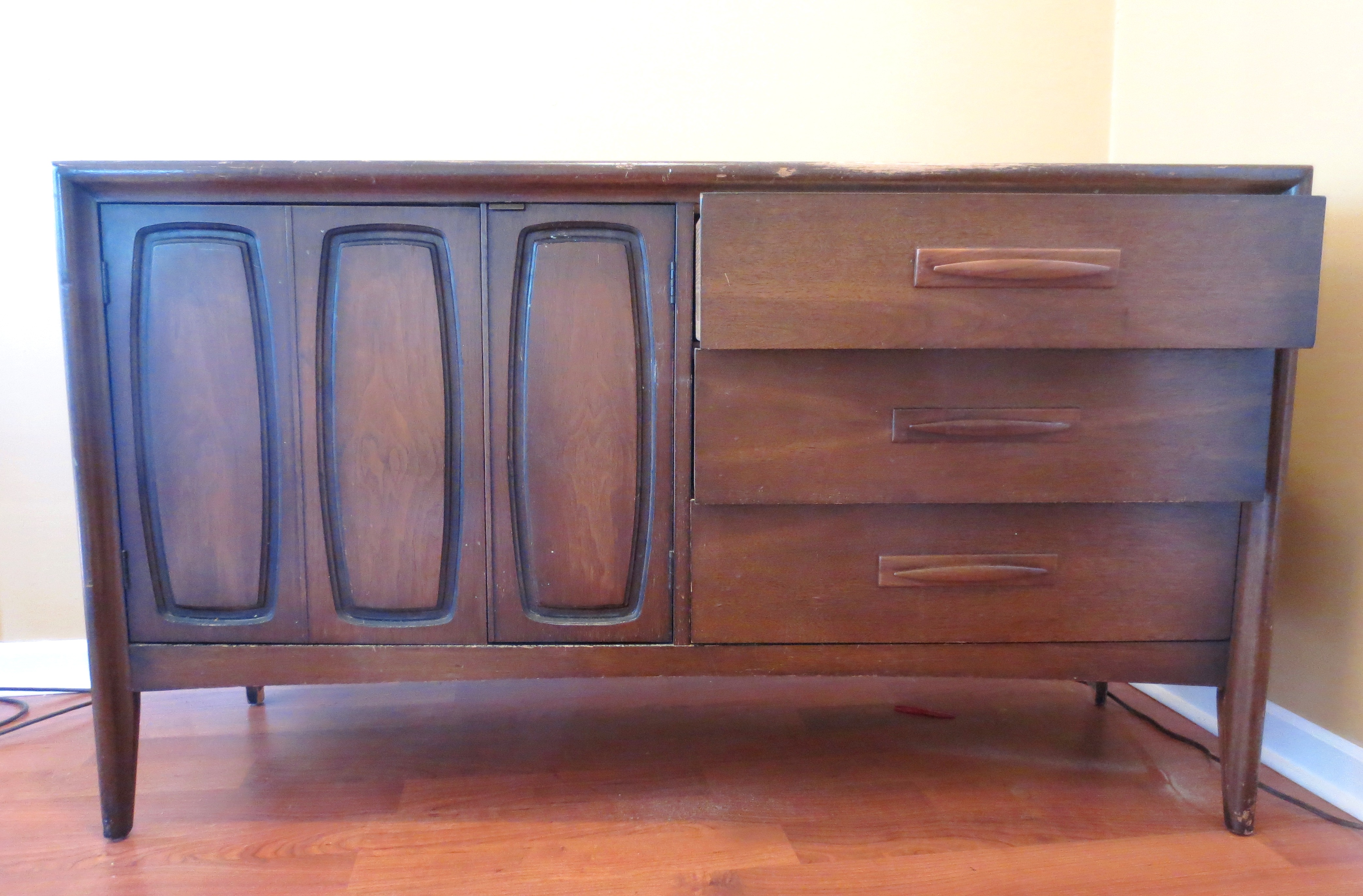 It looks cool and still MCM-esque. Though, I was a bit sad that you painted over it until I saw the close-ups. BTW, you’re probably aware, but I think the dresser is from the Broyhill Emphasis series.