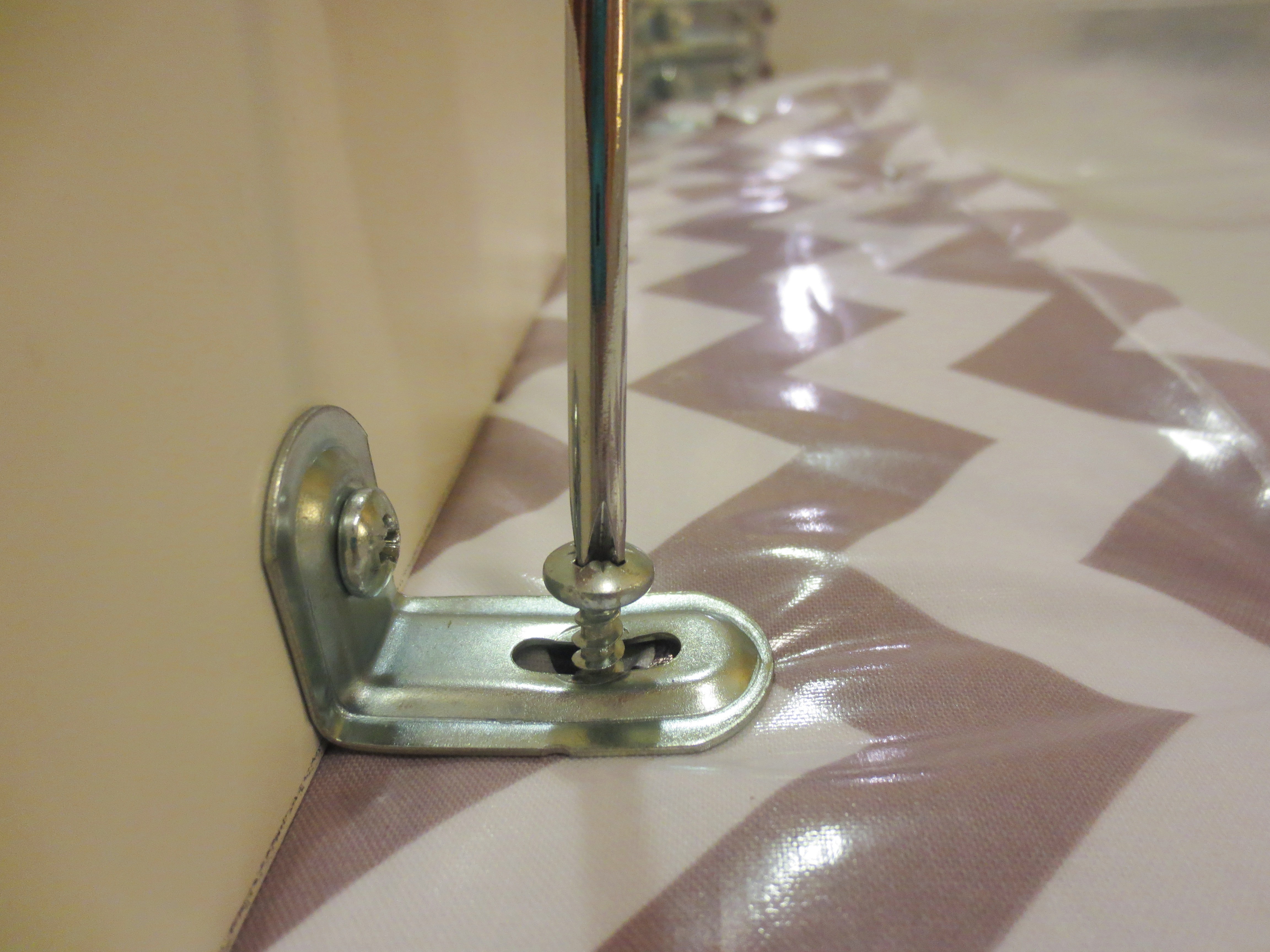 Since you can see through the interfacing, mark the screw holes with a black marker so you don’t forget where to re-attach the brackets.