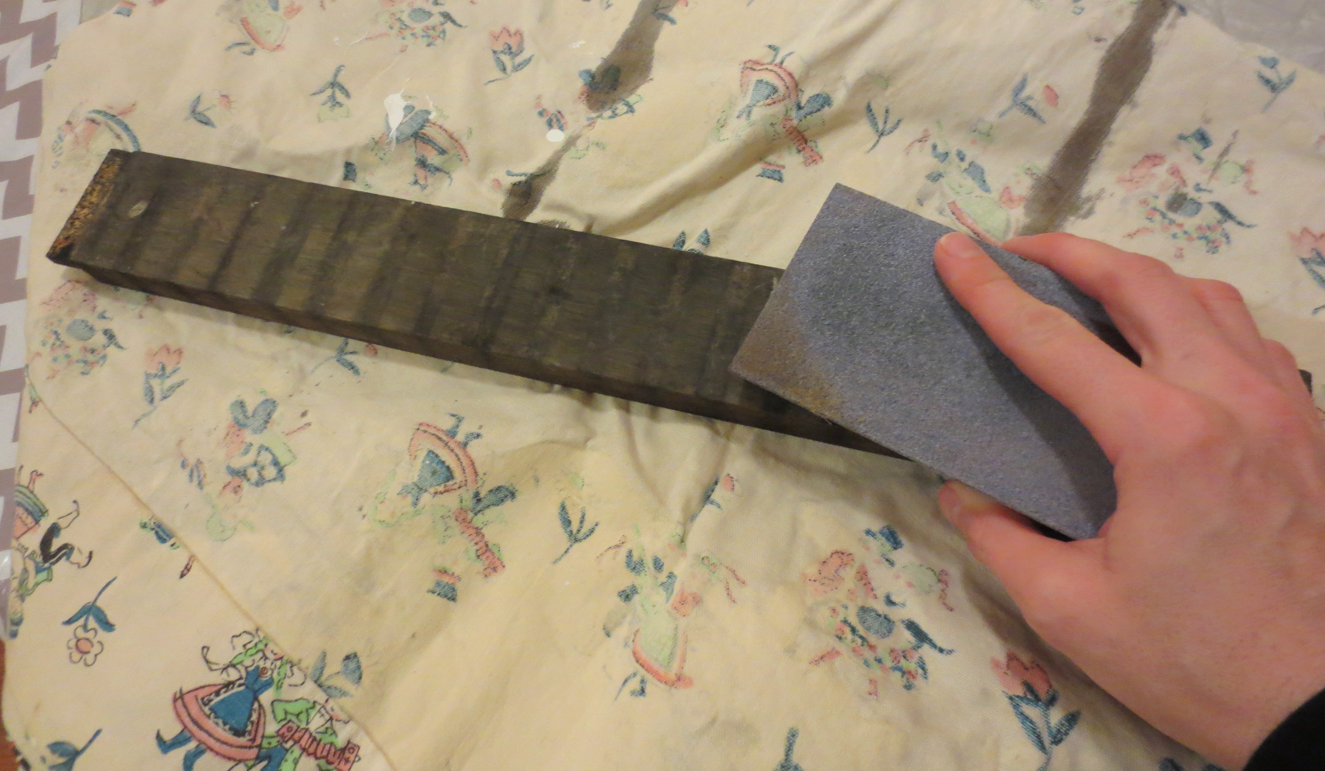 STEP ONE – PREPARE THE BASE: If you don’t have a good piece of scrap wood, then go to a hardware store and get one. Now, sand the wood in the direction of the grain, wipe with a damp rag and air dry.
