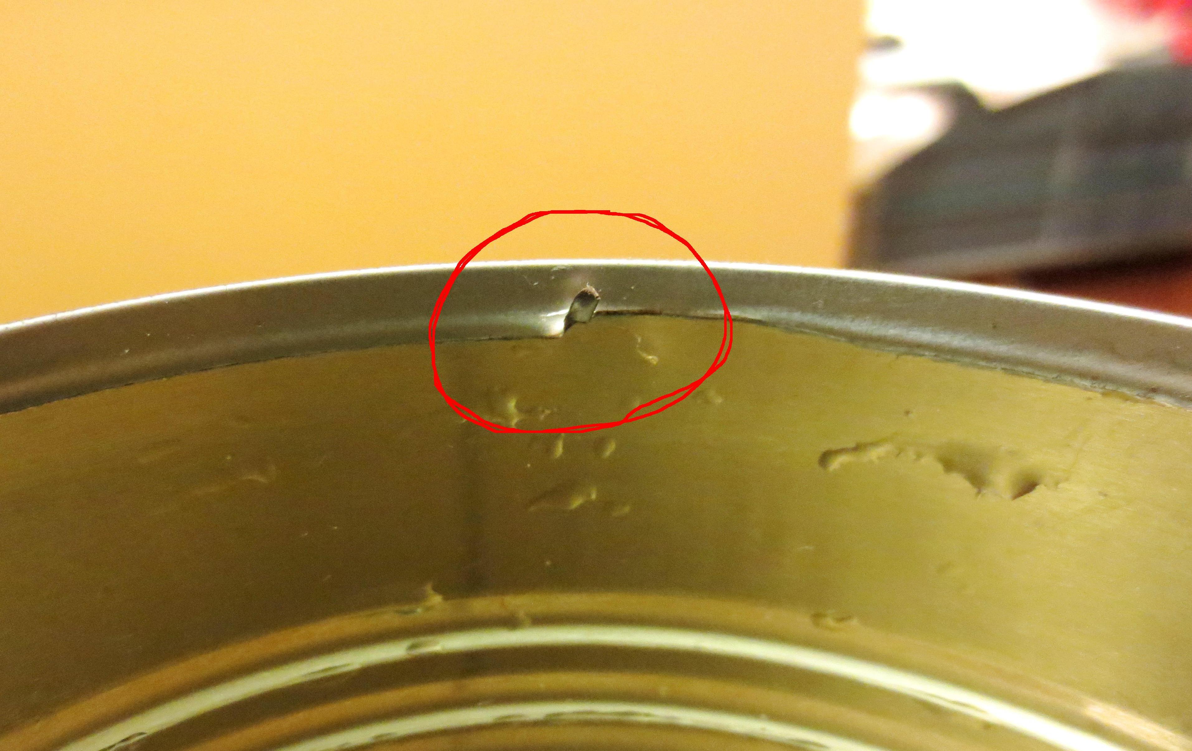 IMG_2894_redcircle I found one burr out of four cans and used pliers to snip off the dangling edge, then smoothed out the rough spots with metal file.