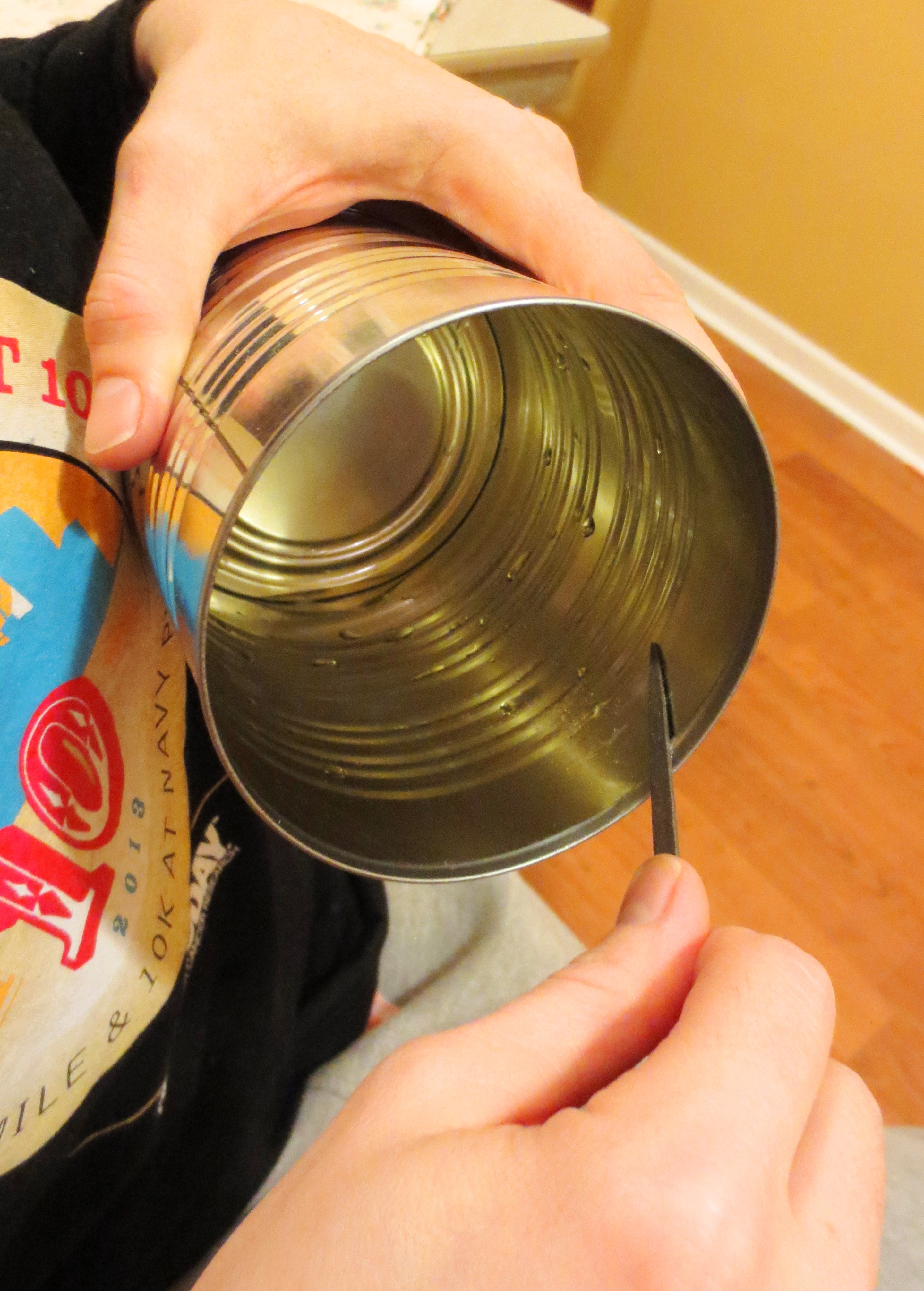 IMG_2906STEP TWO – PREPARE THE CANS: Hopefully, you’ve been saving your 28-ounce tin cans. If not, this is a great time to cook a massive batch of chili.