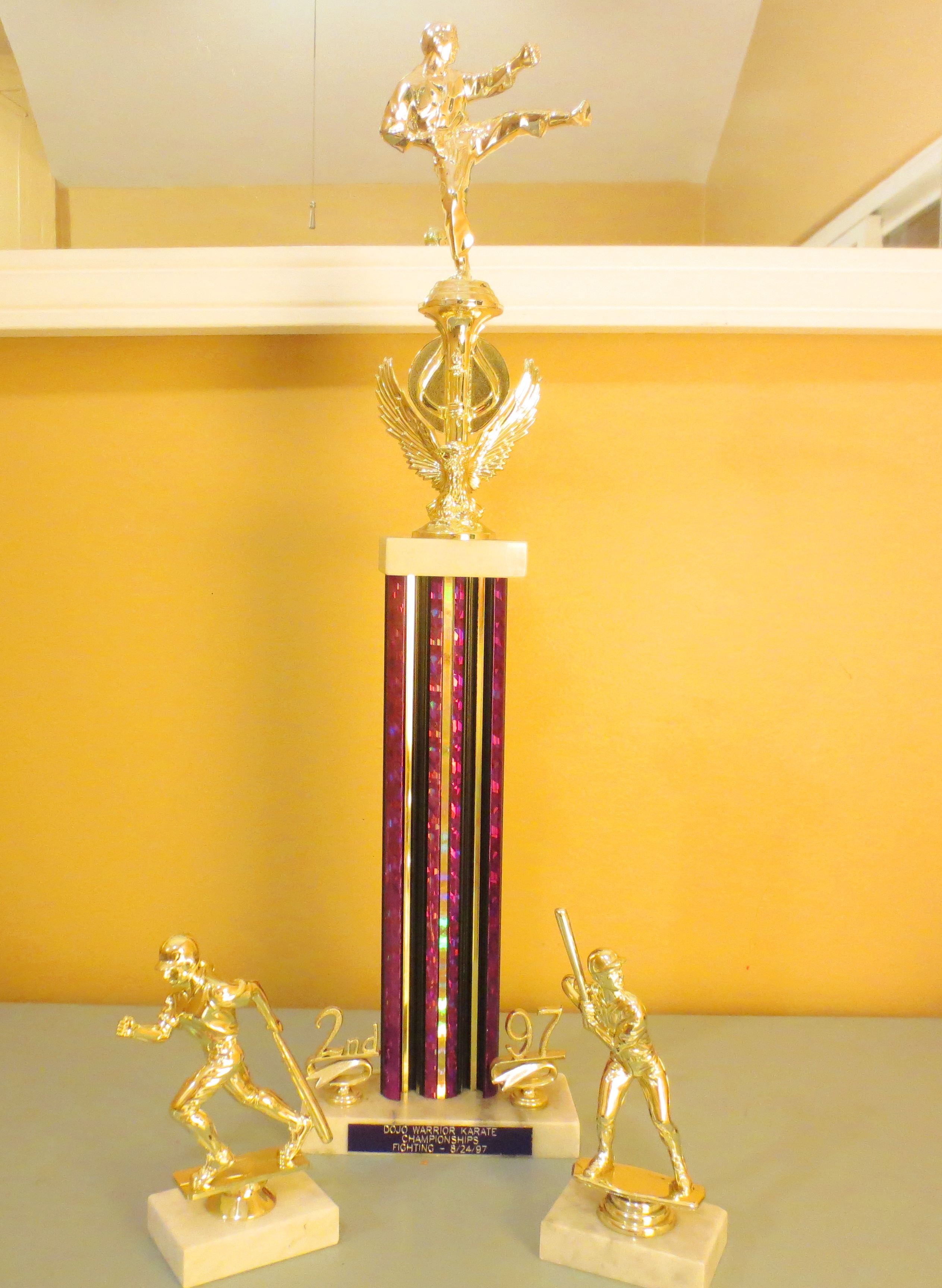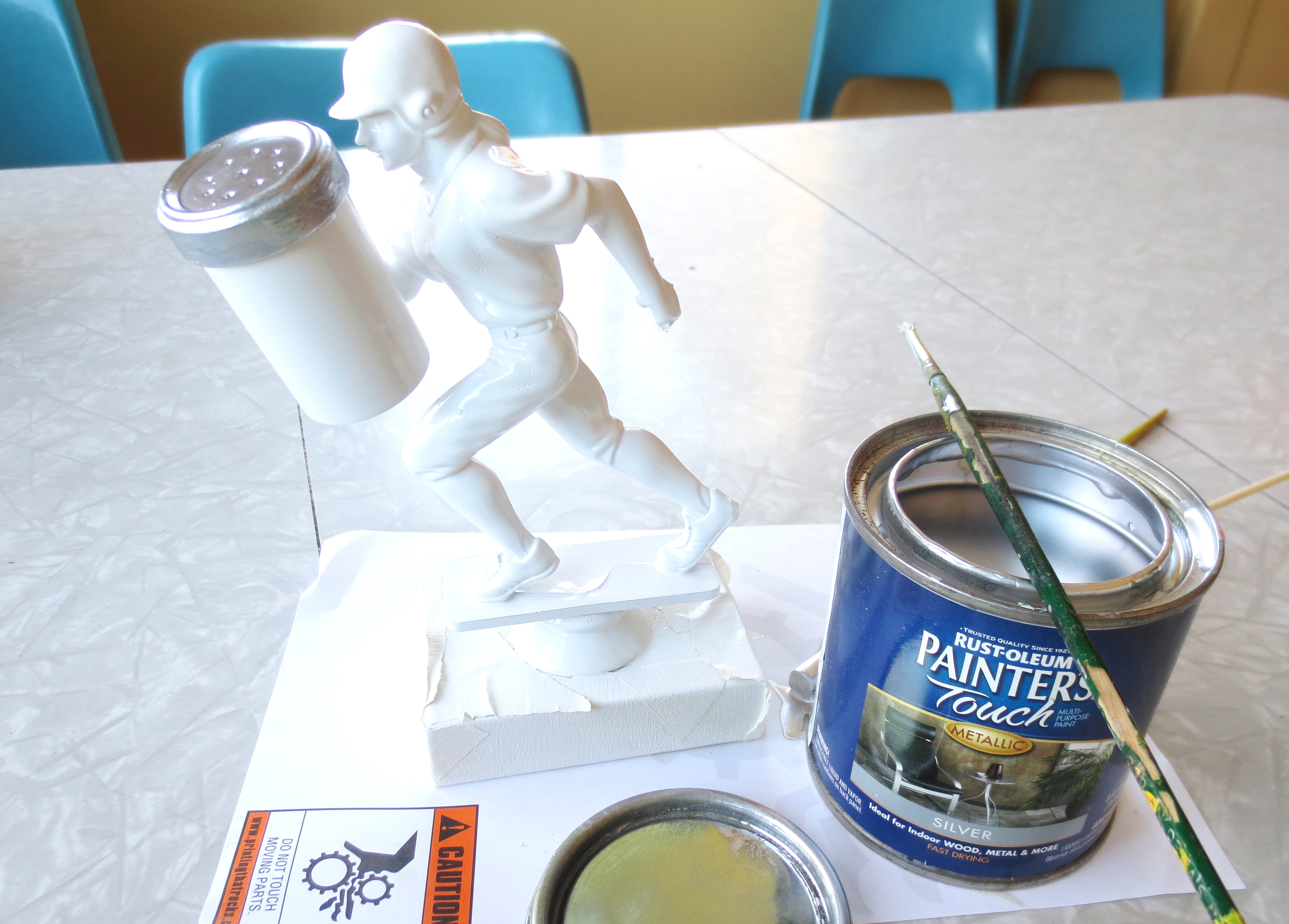 STEP ONE — CHOOSE AND PREPARE TROPHIES: If you’re in Chicago, head to the Unique Thrift Store on 35th and Archer. You’ll find the trophies in what I call the “lost memories” aisle, along with used photo albums, picture frames, and off-brand Precious Moments figurines. I chose one gigantic trophy for “Best Overall” and two smaller, but slightly different, trophies for “Orangest” and “Most Unhealthy.”