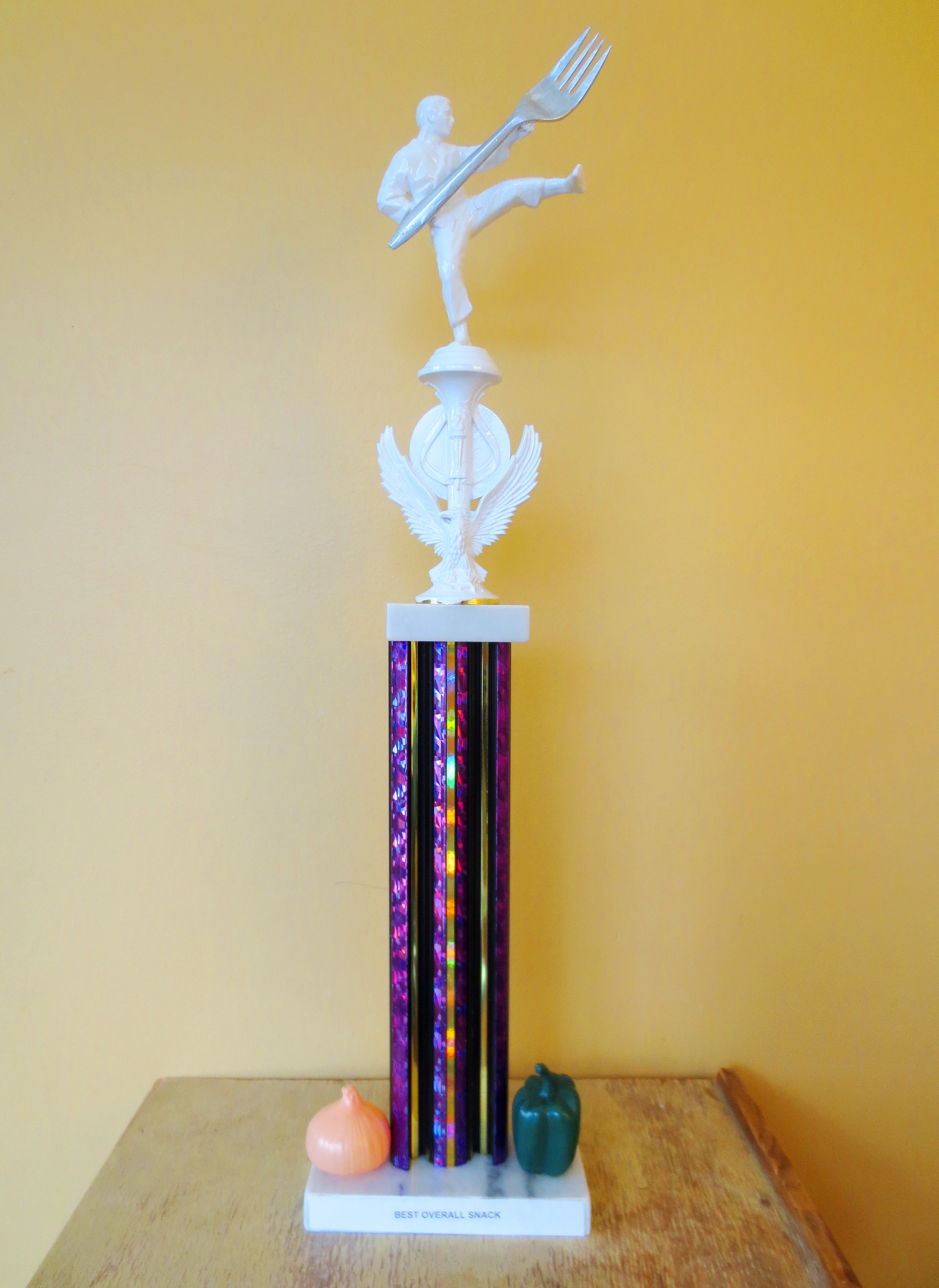 Glad you got a good laugh. My younger kids (age 2 and 4) don’t know what to make of the trophies. Apparently my 4-year-old’s been telling her friends there’s a trophy for “Healthiest Snack,” I’m guessing because of the pepper and onion on the base of the big trophy.