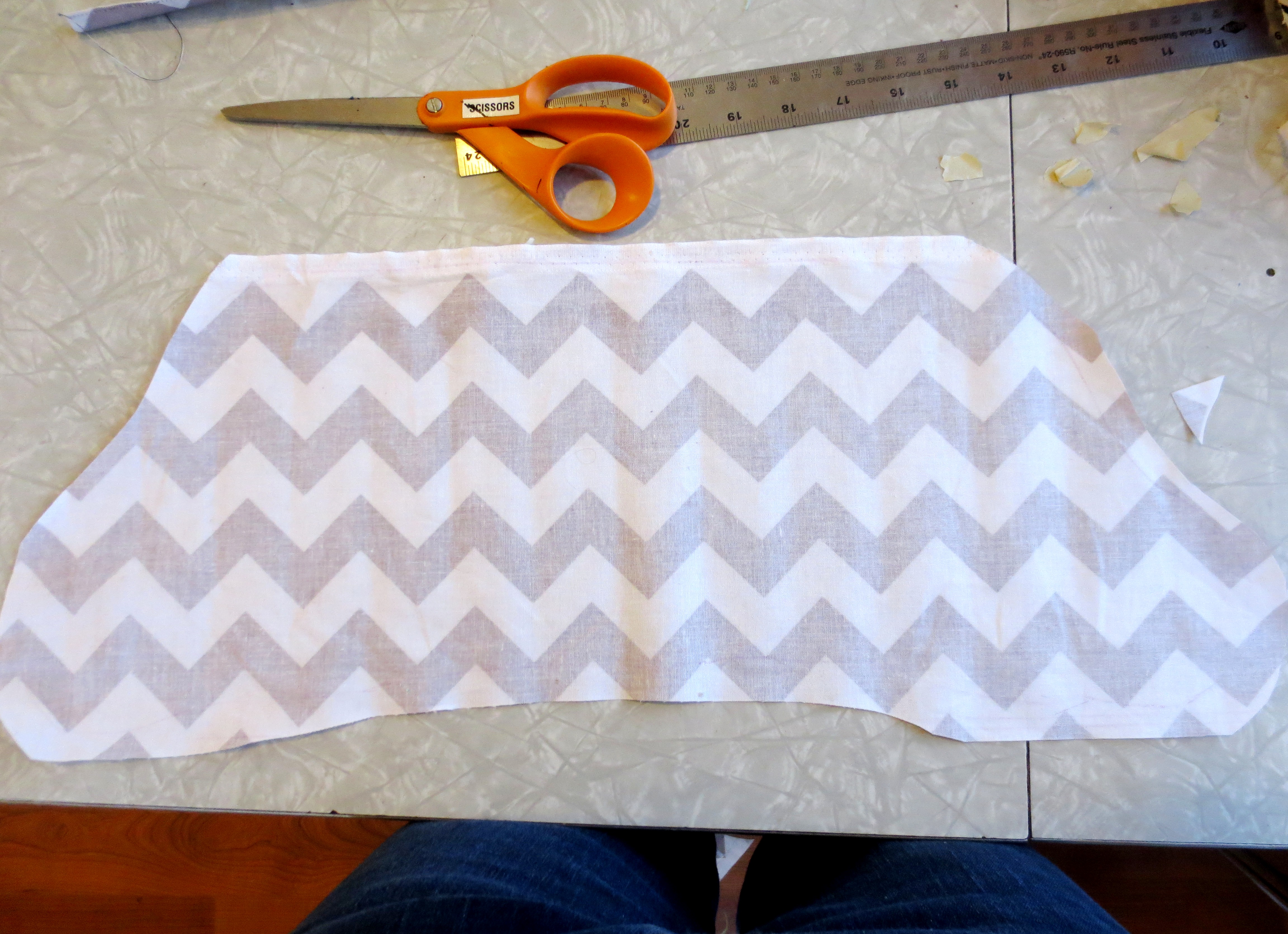 Next, cut a piece of the same fabric in the shape of the cushion, plus about an 2 inches extra.