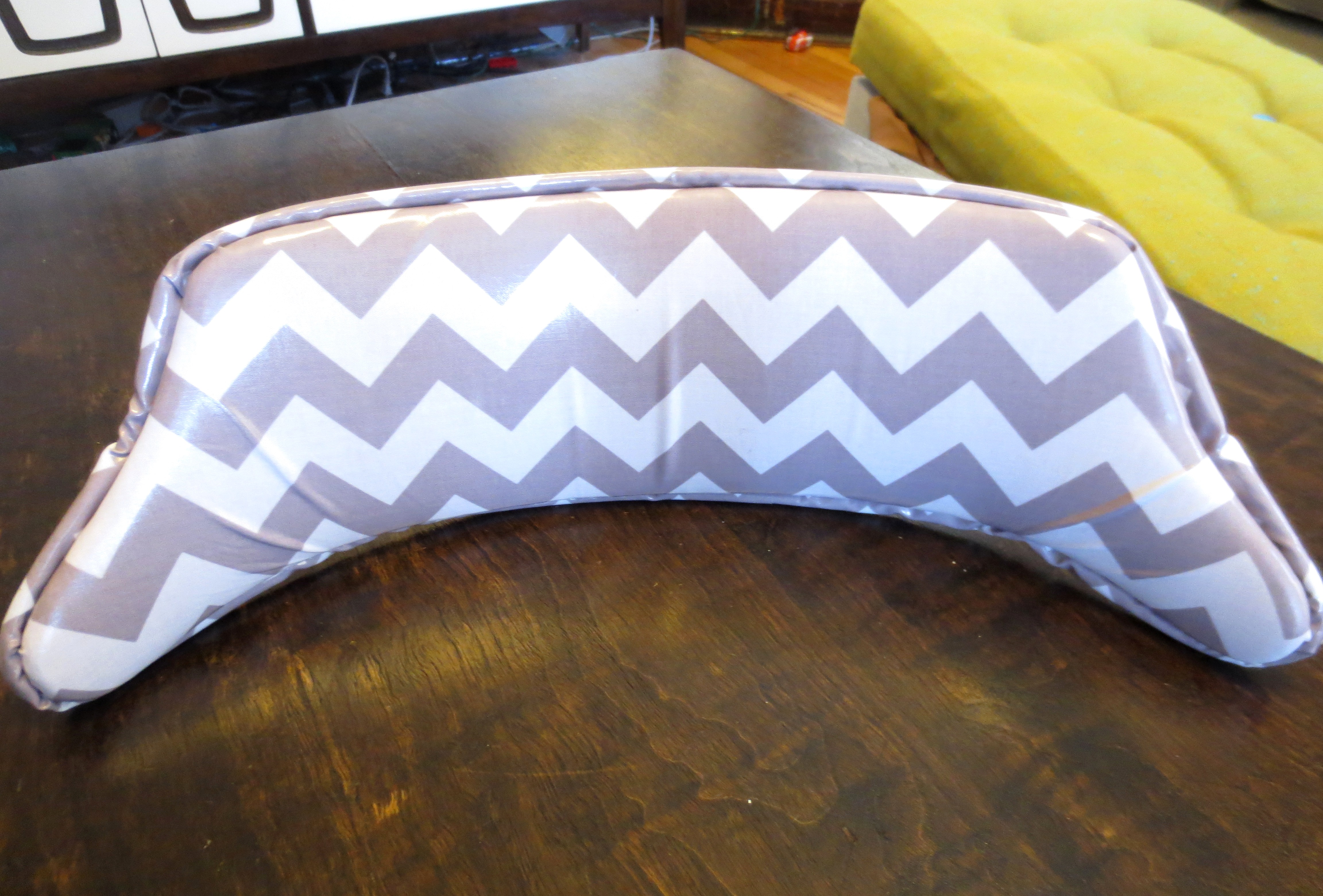 When your piping gets to the bottom center of the cushion, simply insert one end of the cord into the “taco shell” of the the other end and staple shut, so that no cord is exposed. This concept is pretty much impossible to explain in photos:
