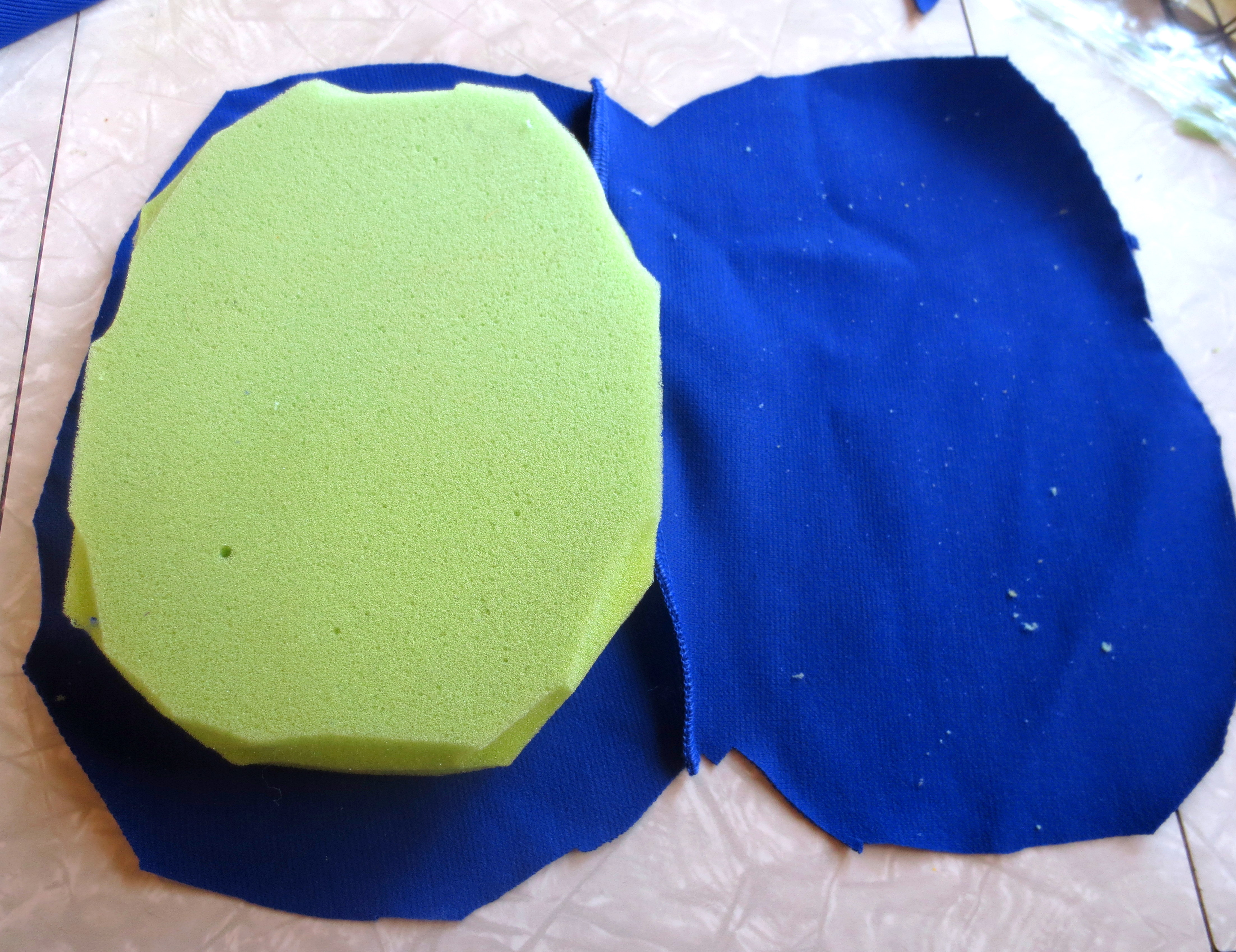 IMG_3958Place your foam pad on the fabric to get the approximate size, then cut out a piece of fabric approximately double that size, with an extra ¼ inch along the perimeter to account for seam clearance.  You can save some sewing time by cutting two “Siamese” oval shapes, which you can then just fold over and sew on one side. We’re basically making two little pillows. Set aside while we make the strap.