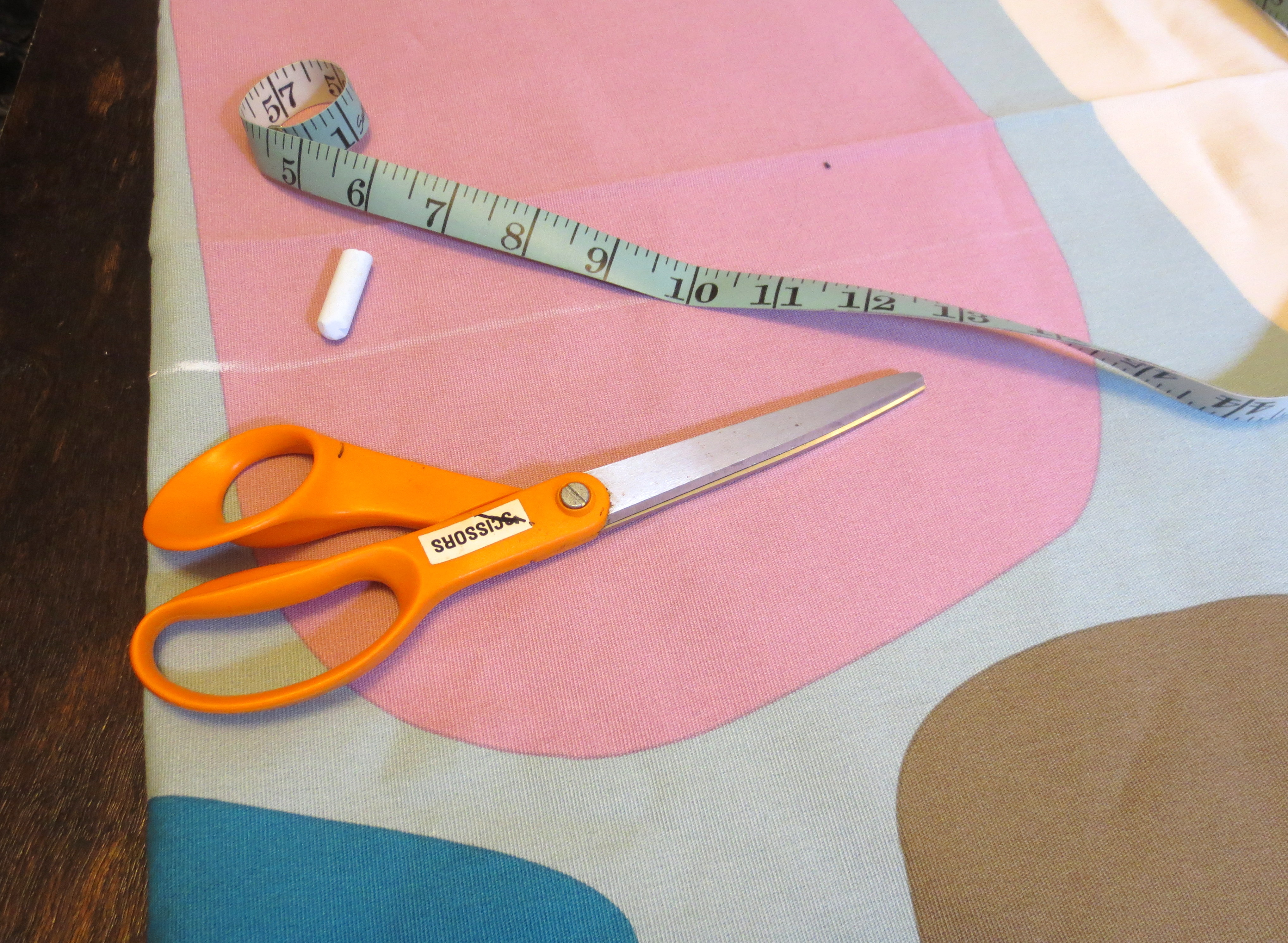 To determine how much to cut, first measure your window. Then add 1 inch to each side, 1 inch to the bottom, and 3.5 inches to the top of your fabric. Use chalk to mark your cut lines: