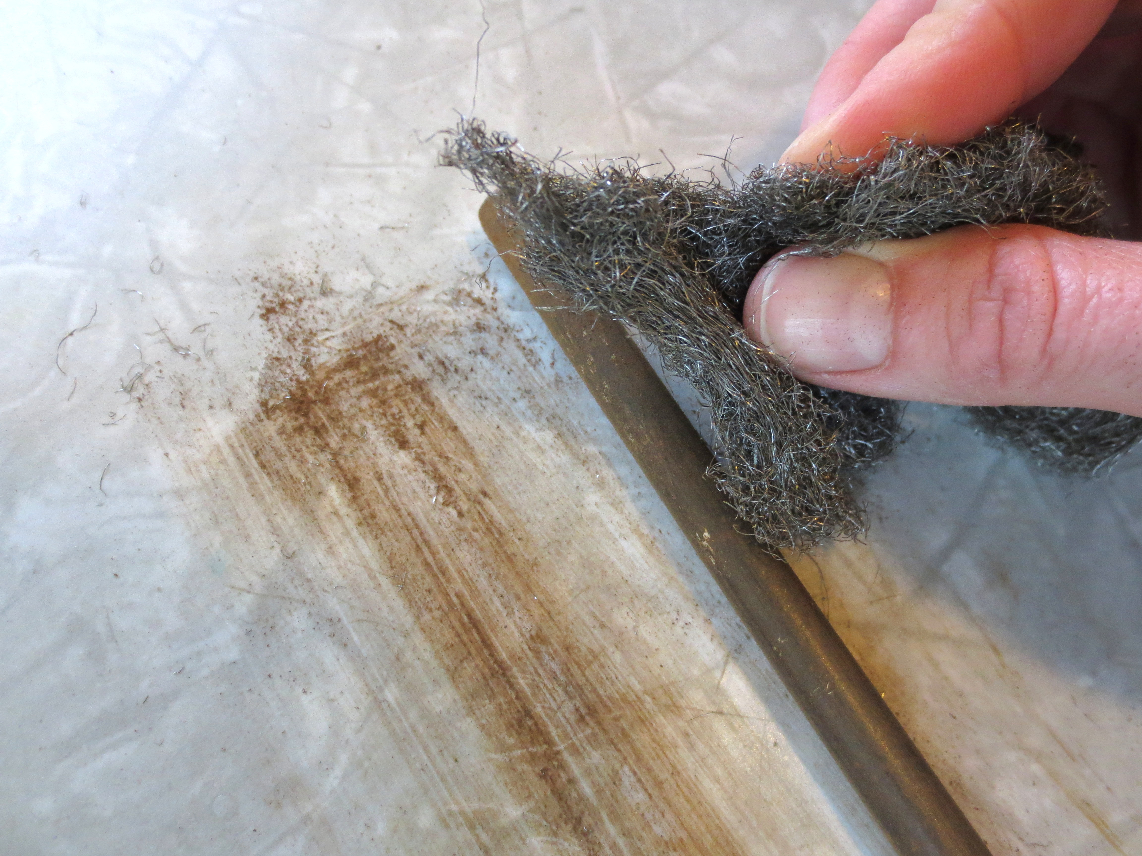 Scrub the rust off with steel wool, and wipe down with some of that Metal Polish stuff that everyone has under their sink: