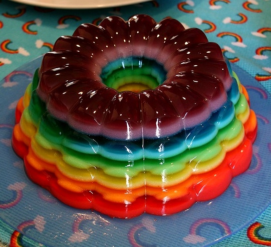 And without any fuss, Megan arrives at the neighborhood potluck with a 12-layer Jell-O® mold that would fit right in at the most exuberant pride parade. We stare at its wonderous glimmering layers. We nudge the plate and watch it dance. We hope nobody notices that all we brought was a six-pack and a bag of stale corn chips and she brought THIS:*