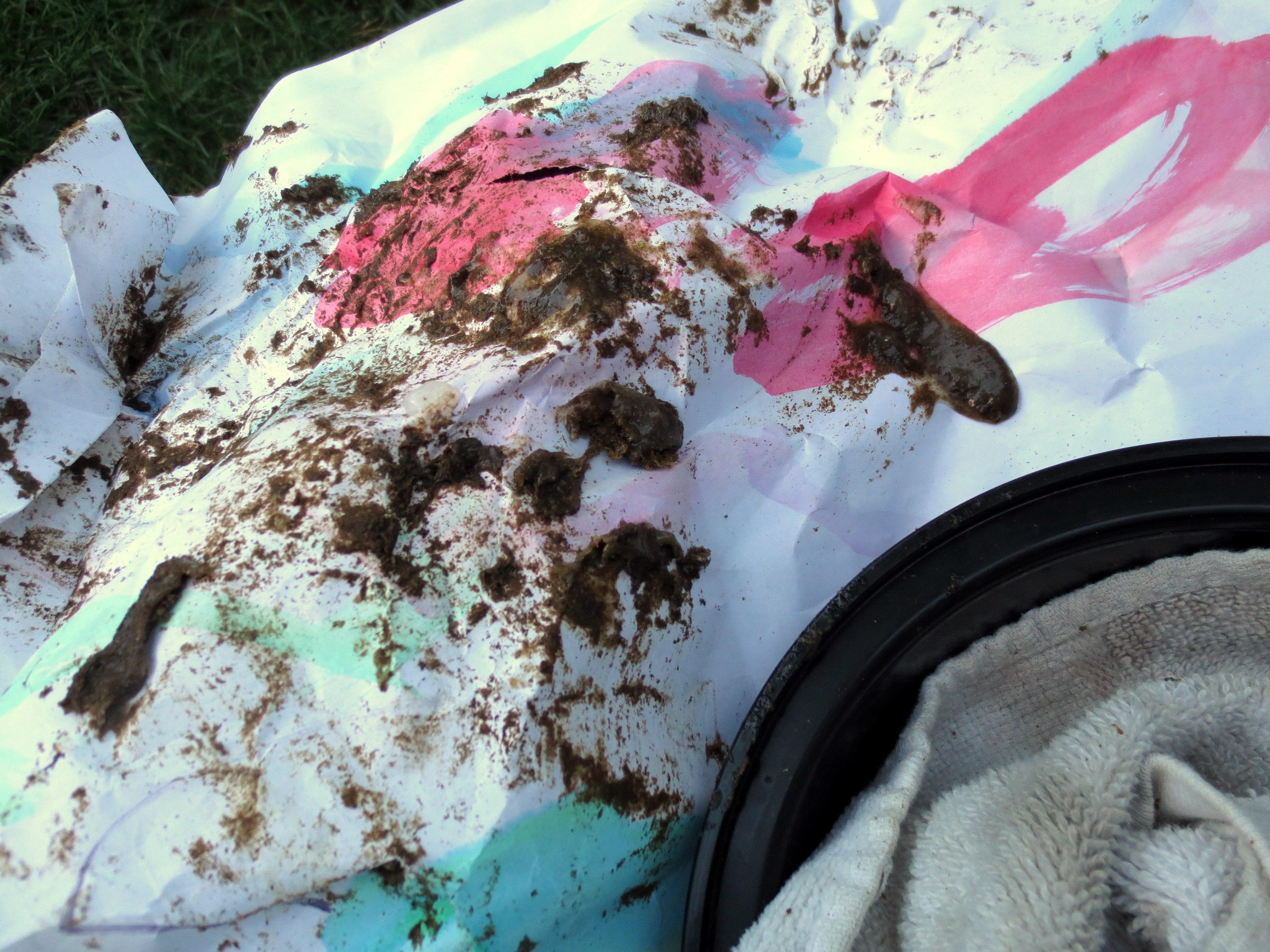 Apply with a disposable brush and scrape off the resulting goo with a plastic scraper. If you did it right, you should have a pile of what looks like baby poo. Wipe it on one of your kids’ rejected paintings for full effect: