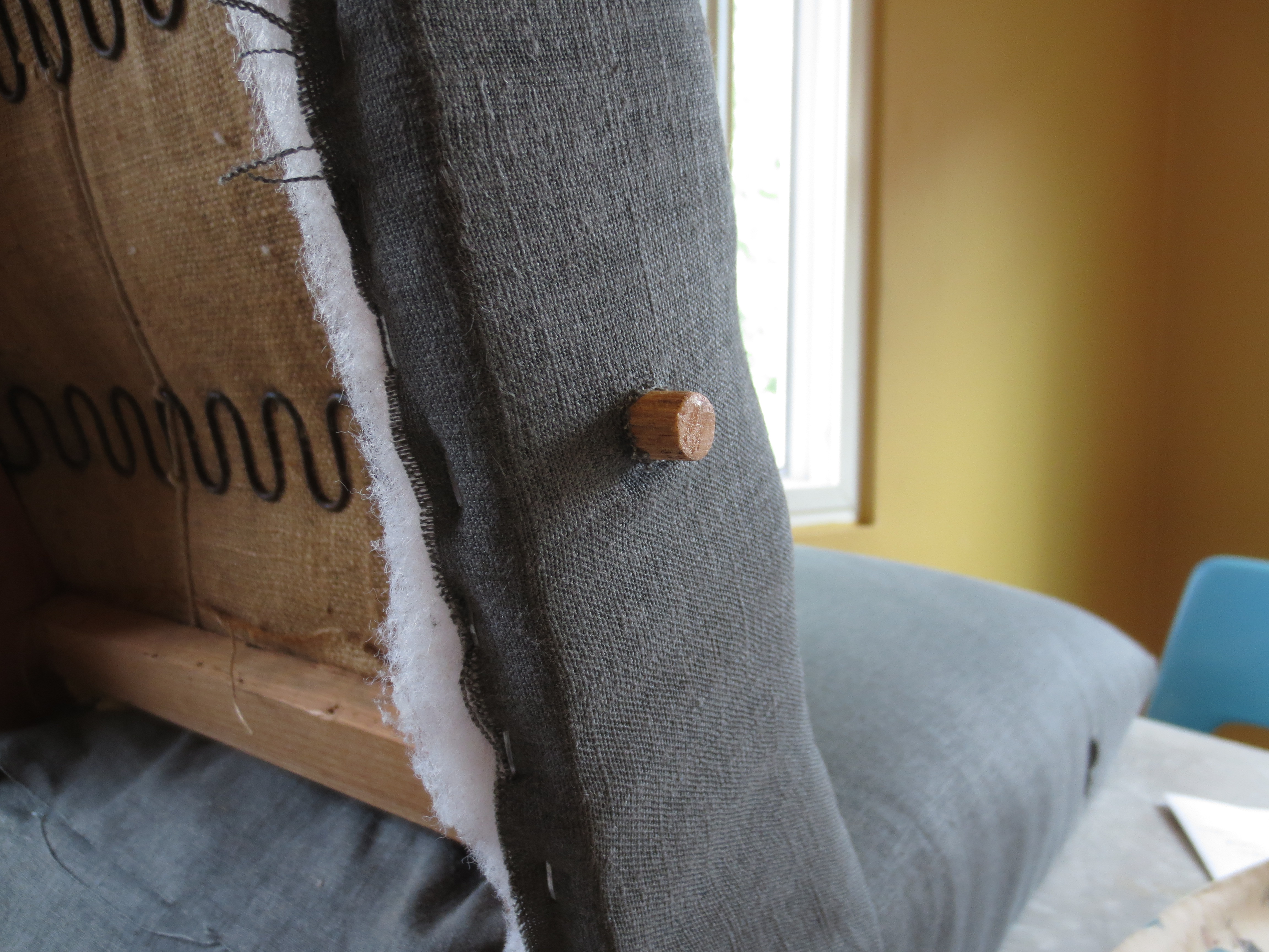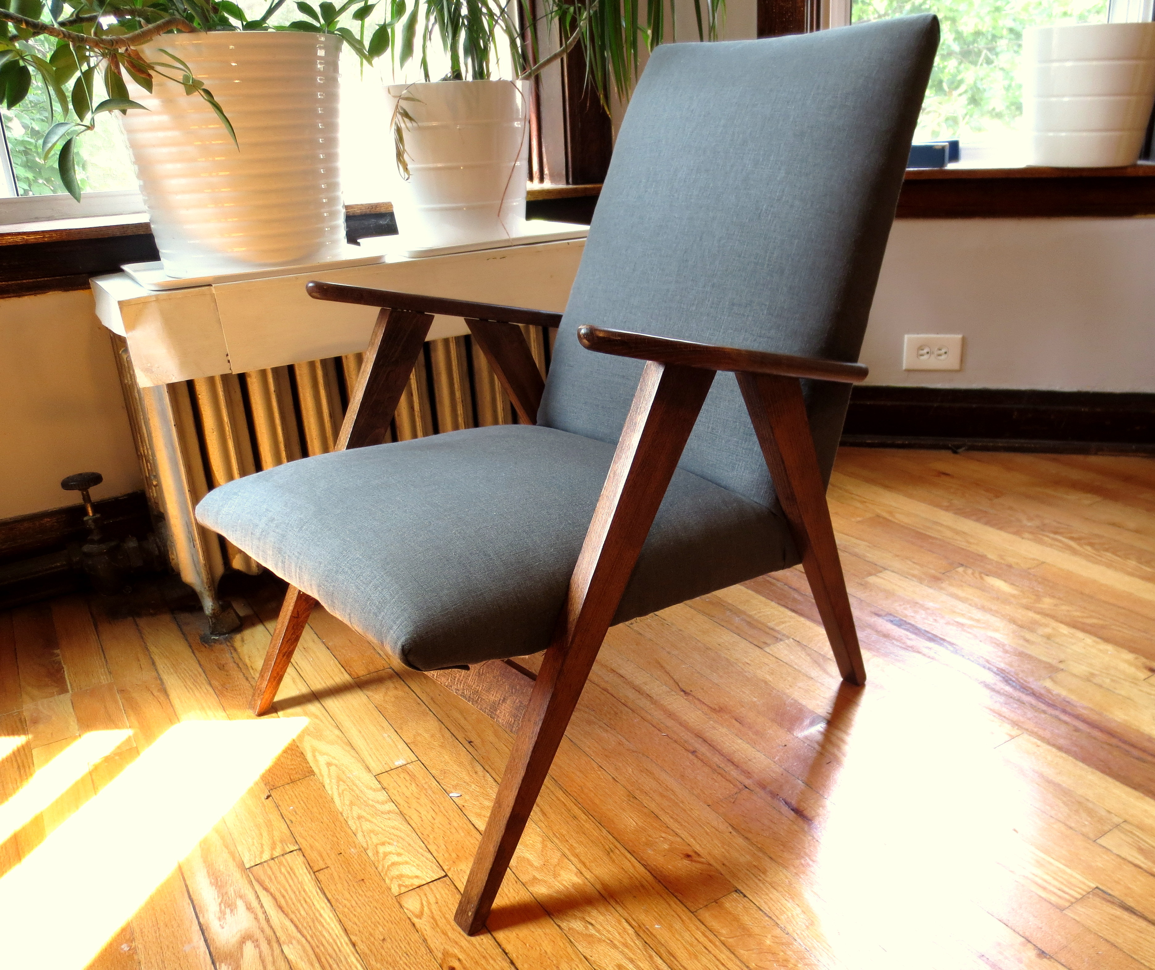That is a very nice job for a first attempt at upholstery. I think my parents had a chair like that when I was little, in the early 60s. They were a bit moderne for their time and it was all Danish furniture and bare floorboards. Your new rescue chair would have looked right at home!