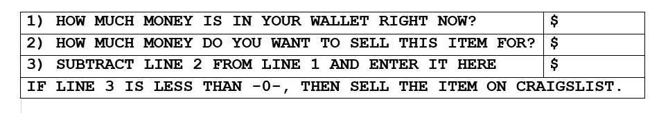 Feel free to print out this IRS-inspired worksheet to determine which items to sell on Craigslist and which to sell at your yard sale: