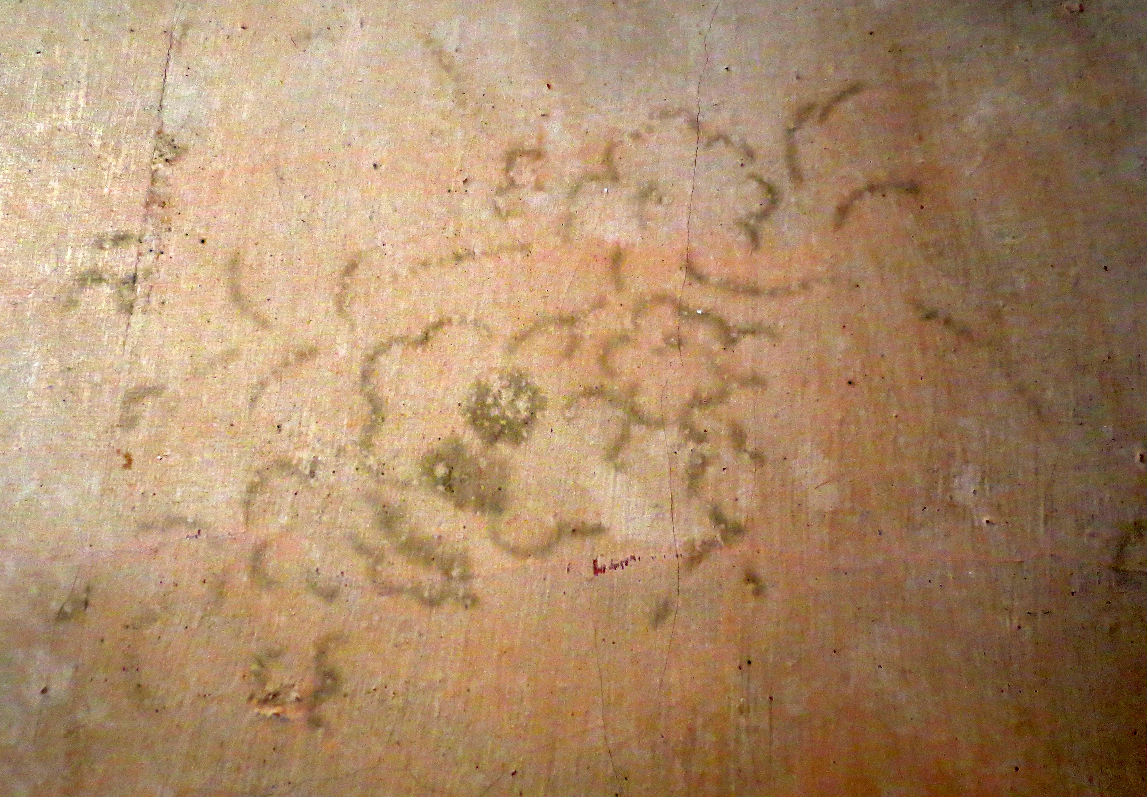 You can even see the ghost of a playful flower pattern seared into the plaster:
