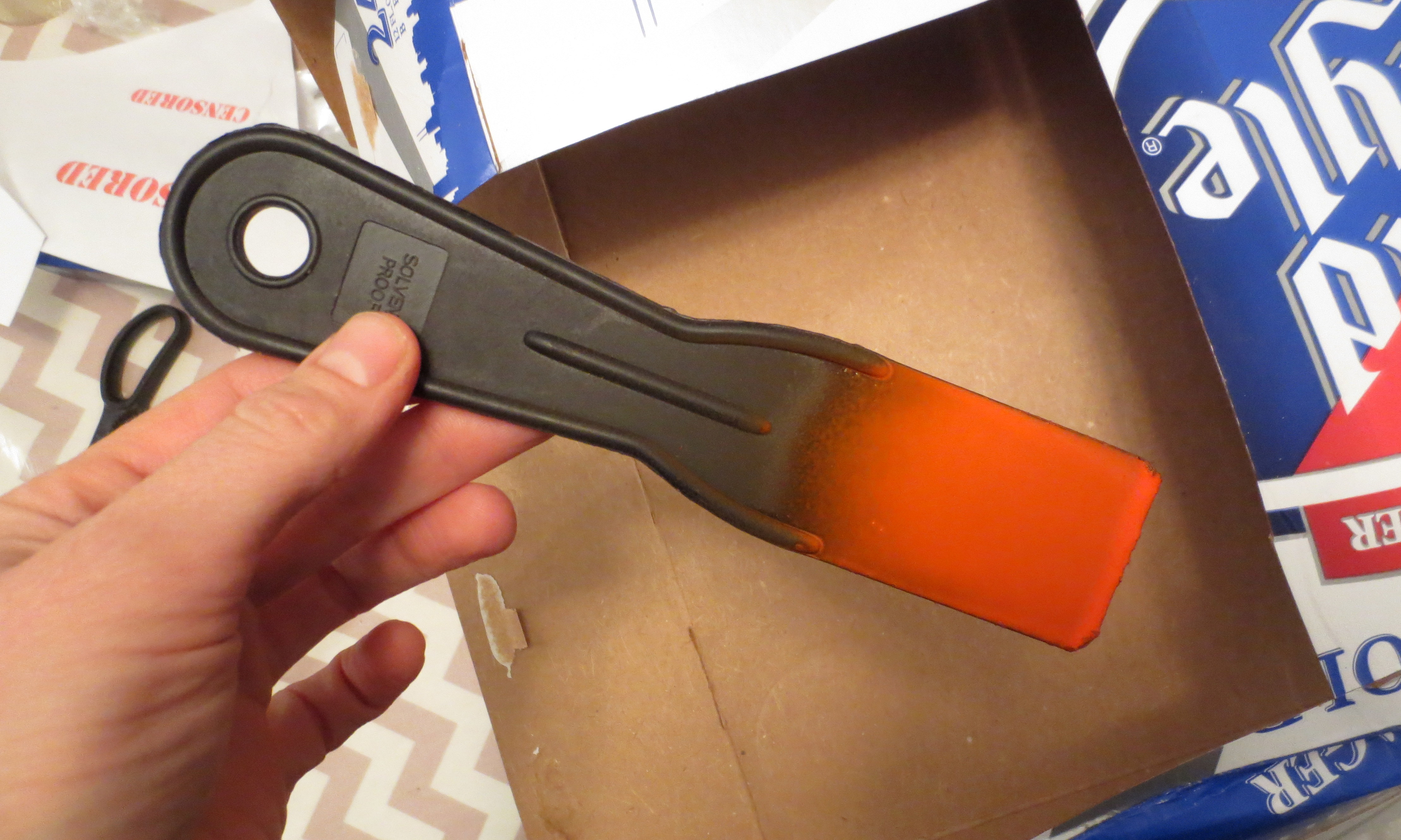 To create this award, I dug around in my tool box for a plastic chisel. I spray painted the bottom bright orange, creating the effect that it had been used to carefully sculpt a giant mound of Velveeta into a work of unspeakable beauty.