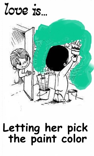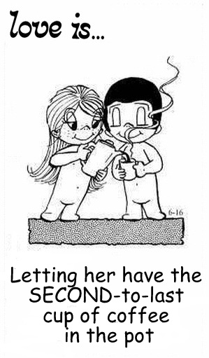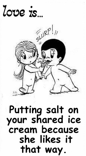 Sometimes my mother-in-law will clip a comic called “Love Is…” out of the paper and mail it to us. “Love Is…” follows the trials and tribulations of two naked 6-year-olds in love. Occasionally one of them dies, or goes off to war, but their love remains strong.