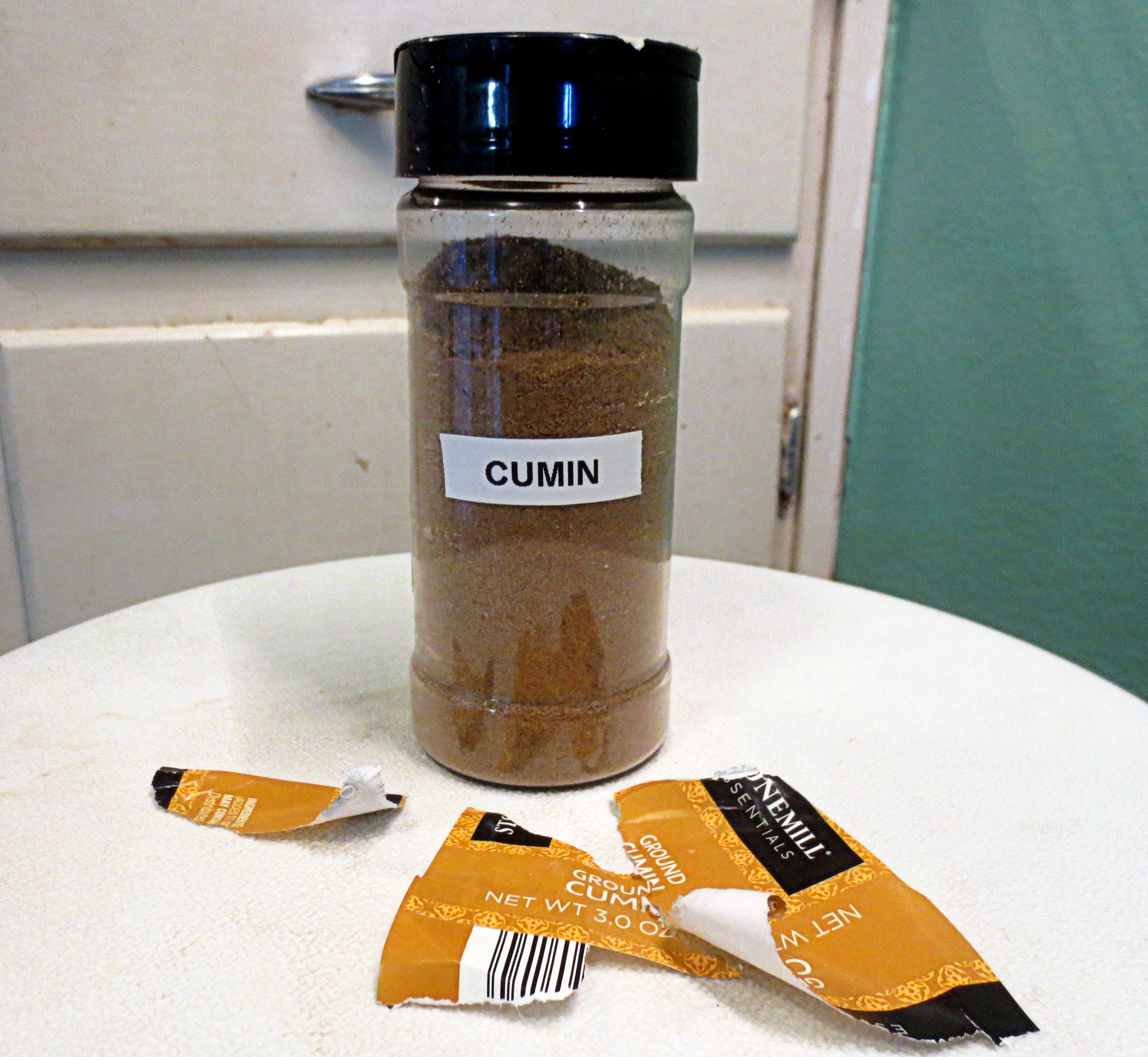 For bulkier spices that don’t fit into your new jars, simply strip off the original label and replace with your own (shhh — nobody will know it’s plastic!):