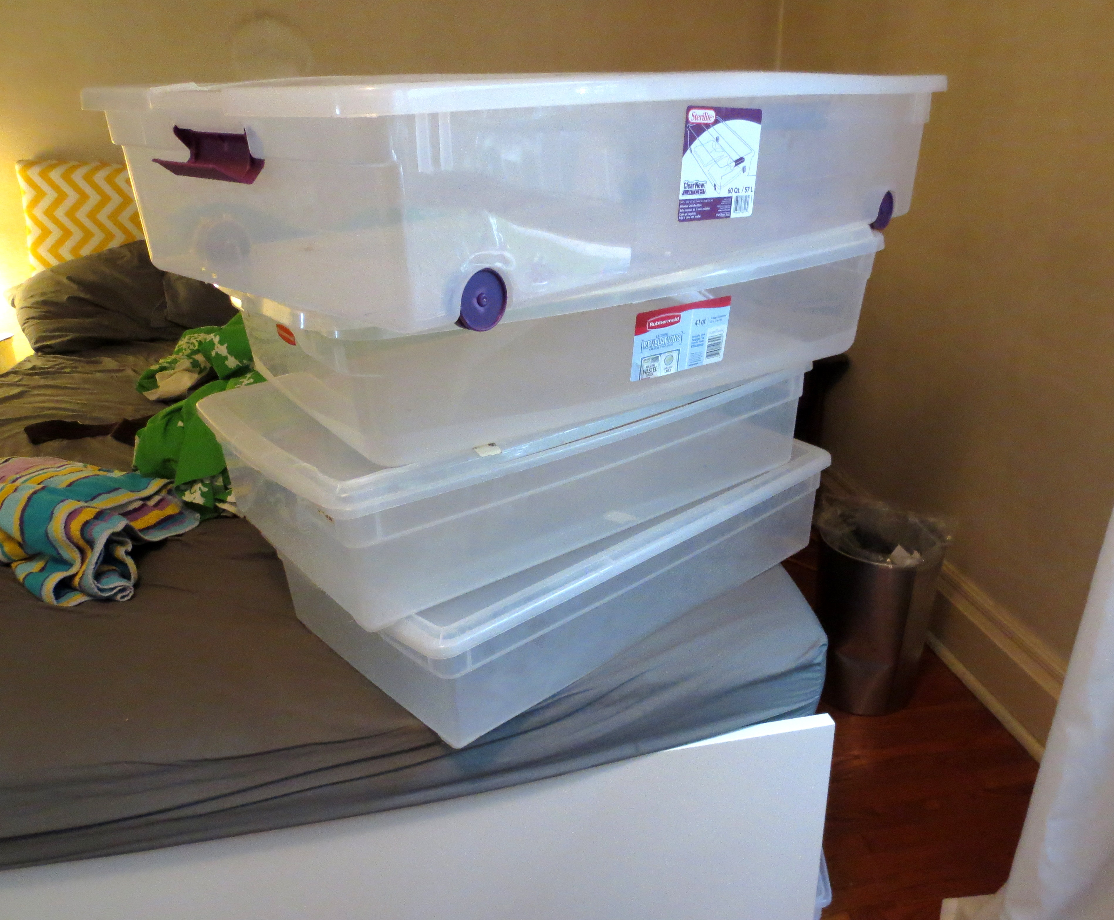 The internet told me that under-bed storage was a good hiding place for bugs. In less than an hour, I had emptied ALL OF IT, mostly into the garbage.