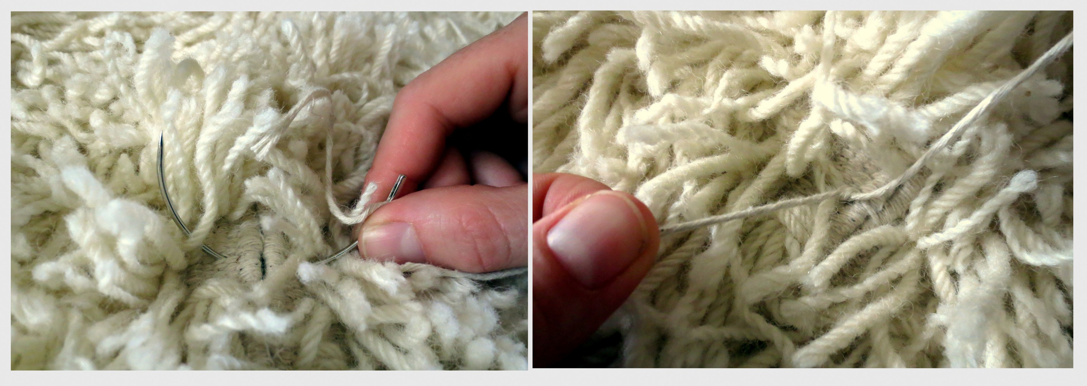 Finally, I tussled up the shag and watched the seam retreat under its yarny tentacles.