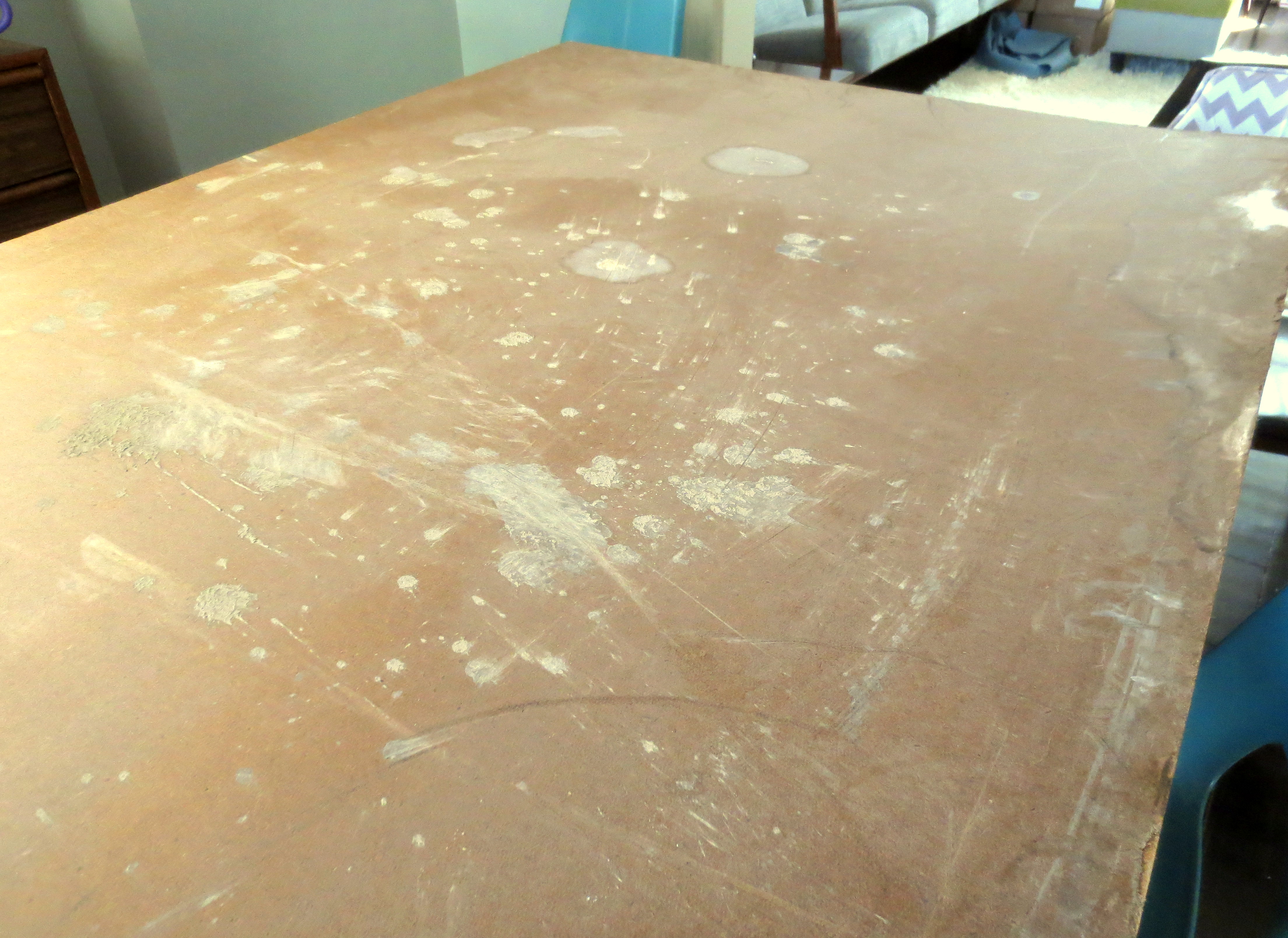 I washed the MDF board backing several times with a wet sponge and a kiss of dishsoap. I then wiped the front side down with a slightly damp sponge, careful not to exacerbate the existing water damage.