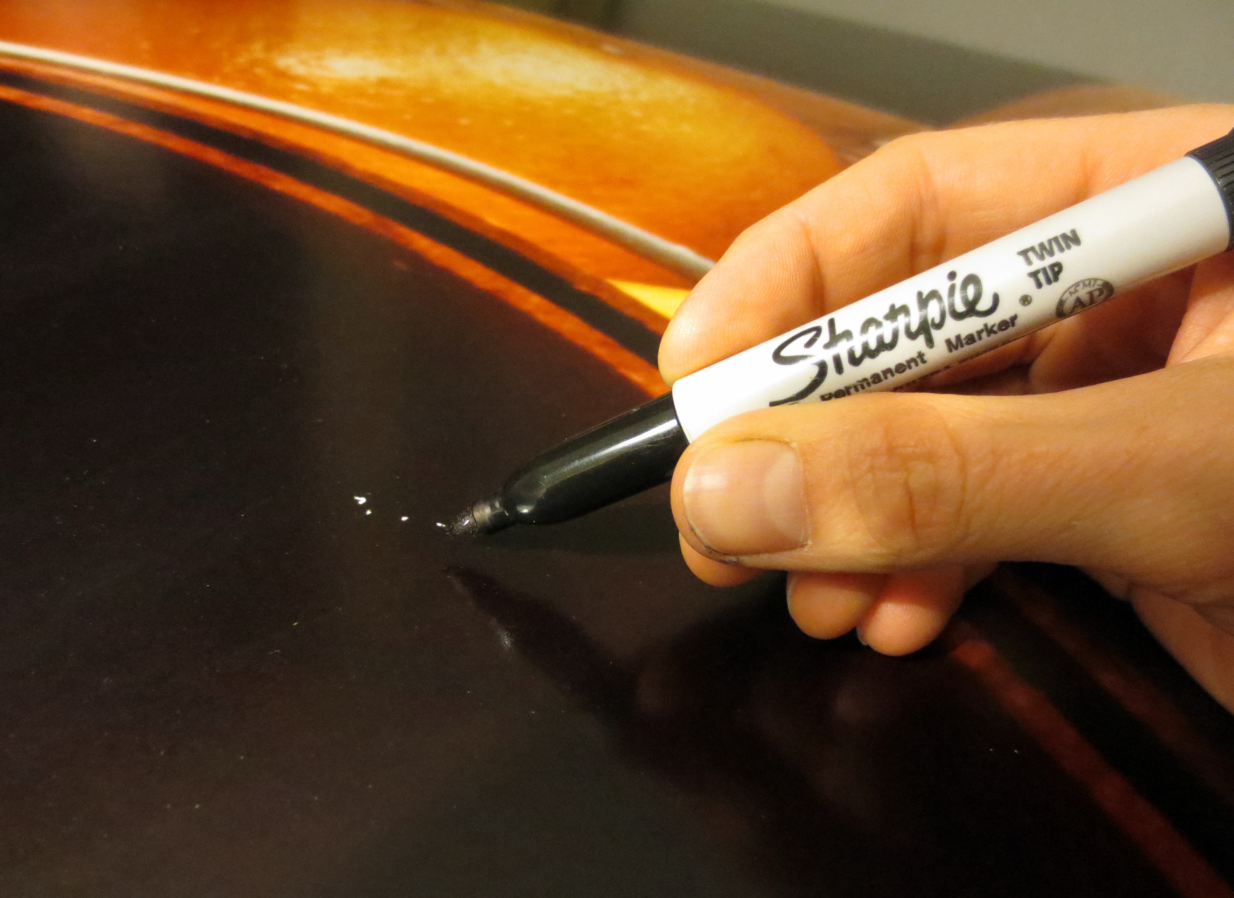 Next, was the Art Restoration phase, where I tried to hide the gouges, scratches and water stains. Since my Fruit Art was printed on glossy poster paper, actual paint would stand out on its smooth texture and possibly warp the paper even further. I settled on Permanent Marker, which is what I hear they used to restore the Sistene Chapel.