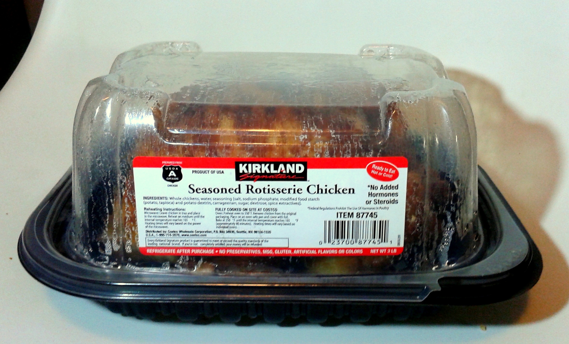 Since our family is relatively meat-ignorant, I wasn’t even sure where to procure a Rot-Chik. But at the school playground that afternoon, my always helpful pal Aileen casually mentioned that she was on her way to Costco*** and could sneak a Rot-Chik out for me. Two hours later, Aileen arrived at my door like an angel, and handed me a steaming blister box of glistening poultry: