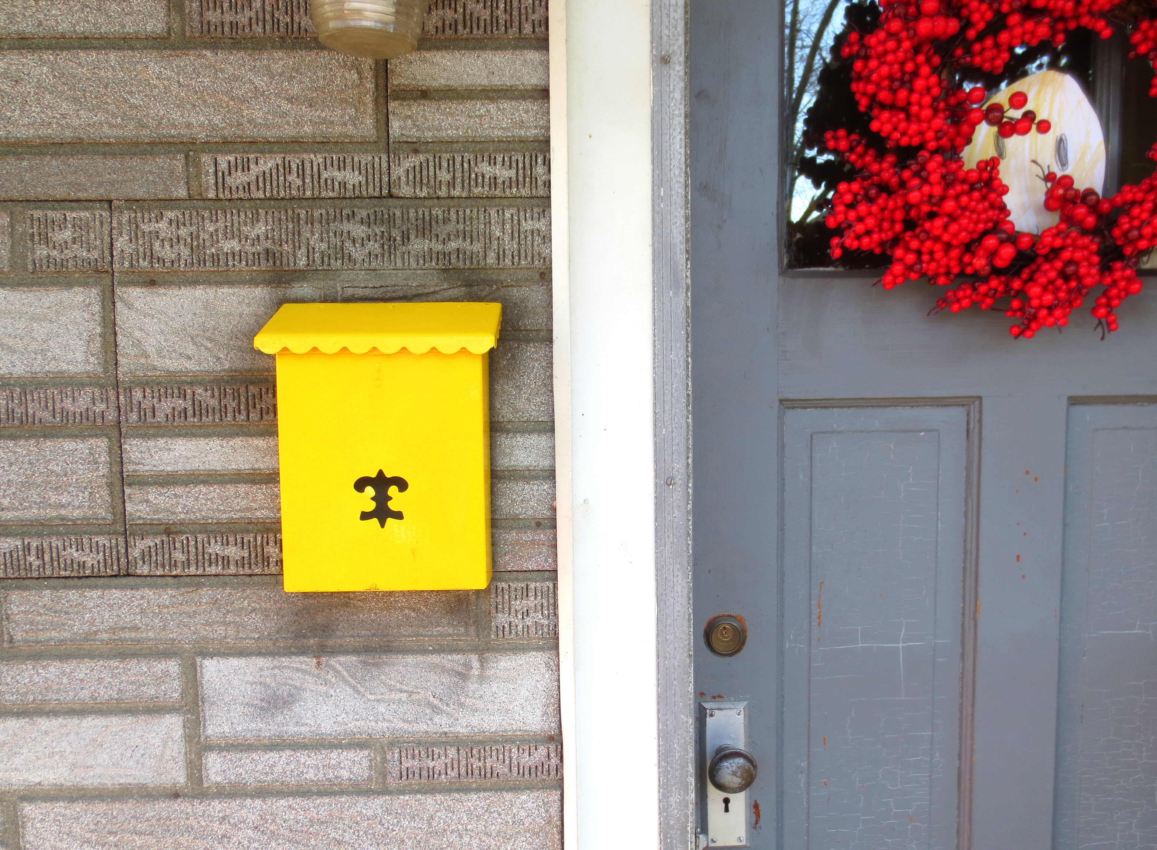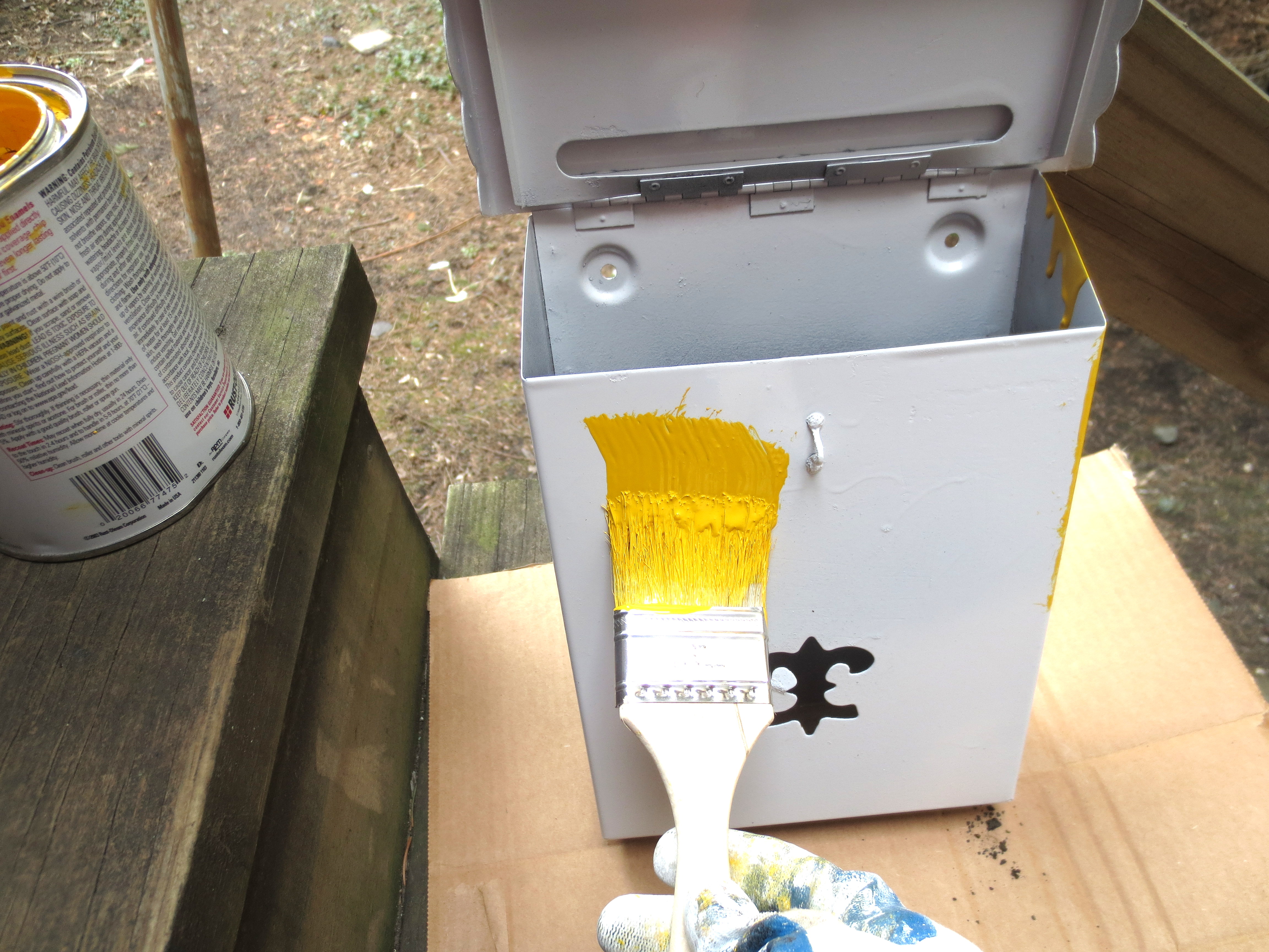 I bought a bunch of 1.5″ wide pine slats at the hardware store, and dipped into the same can of paint I used for the recycling center slats (and also the mail box and my hubcaps).