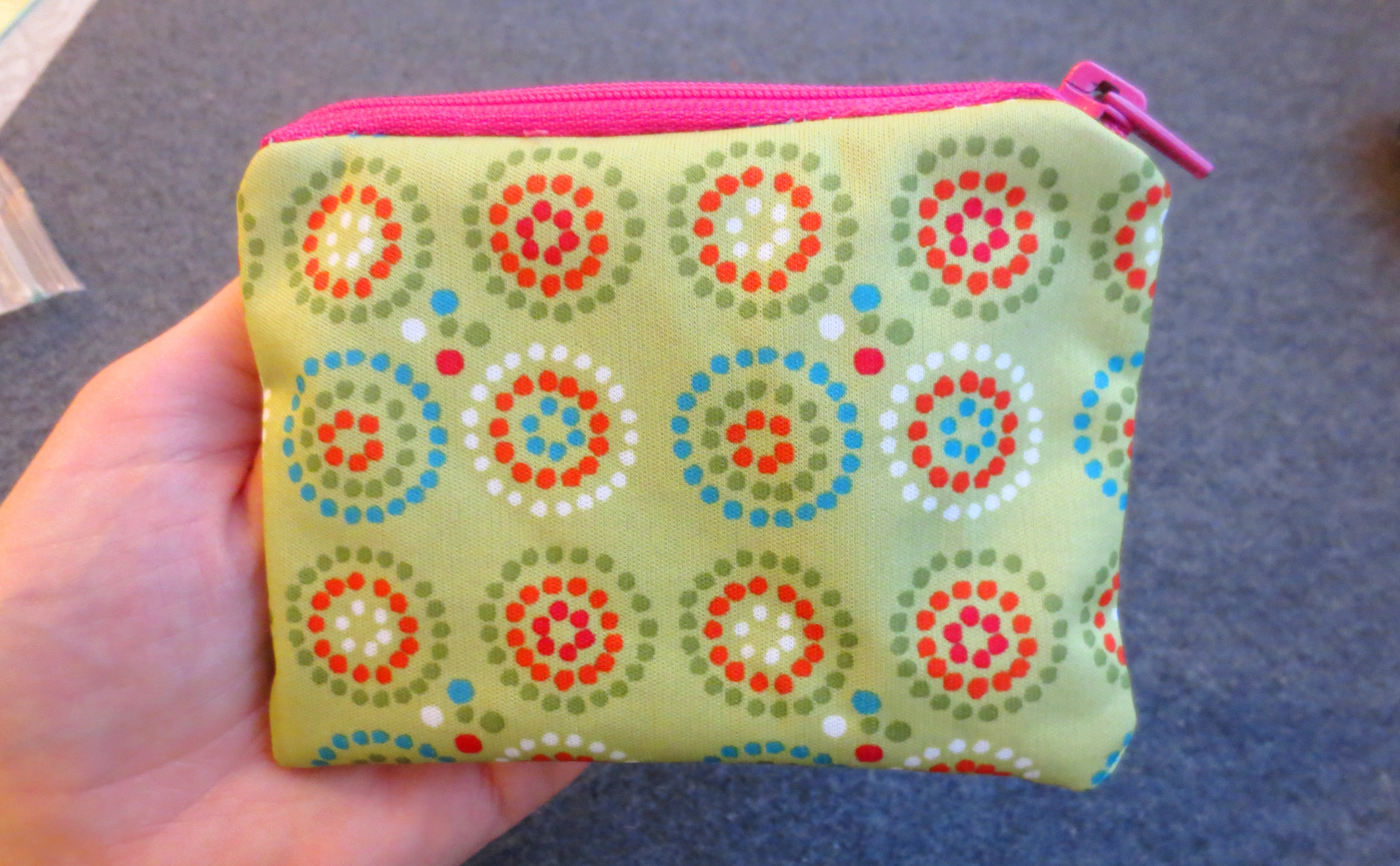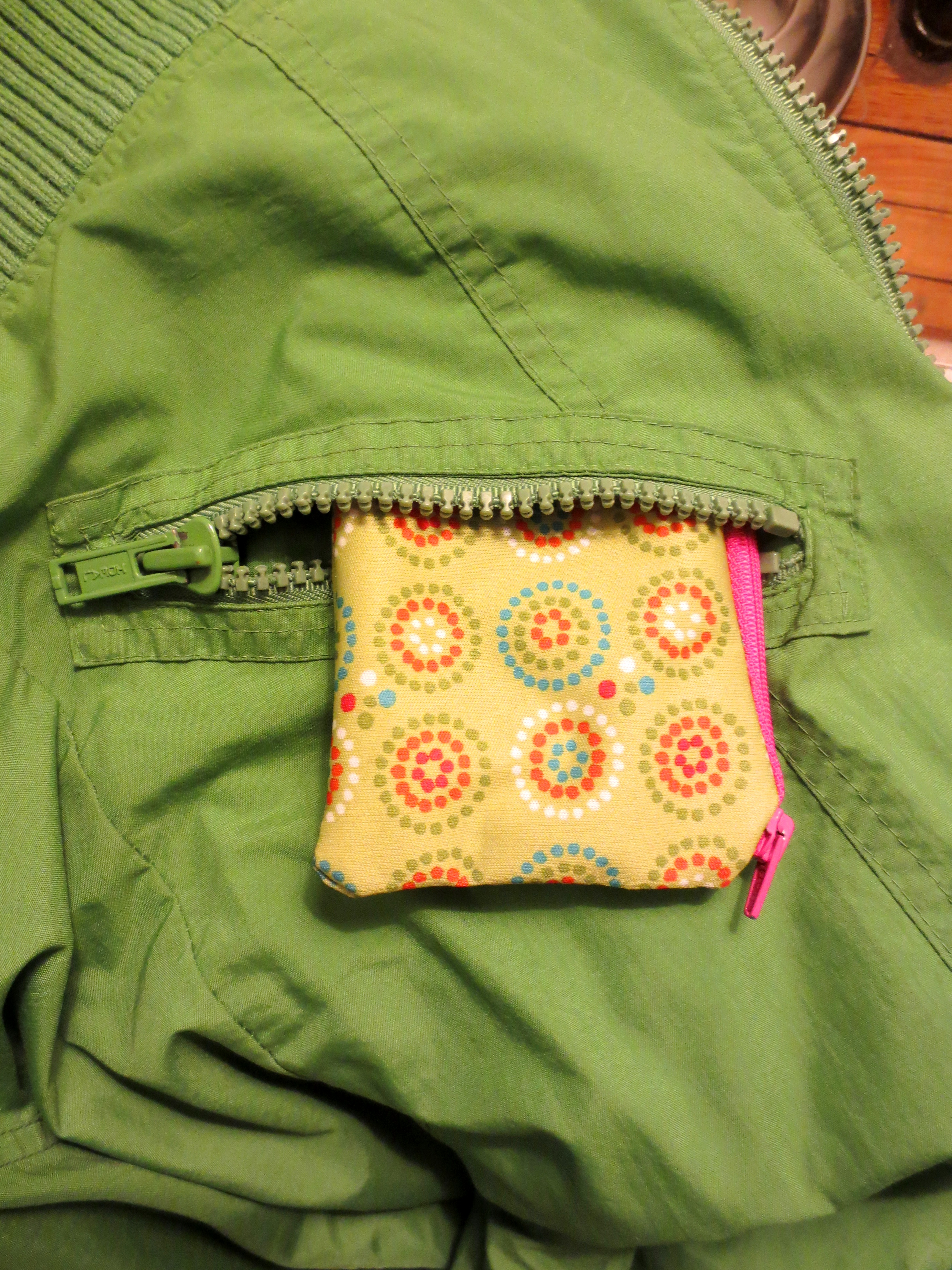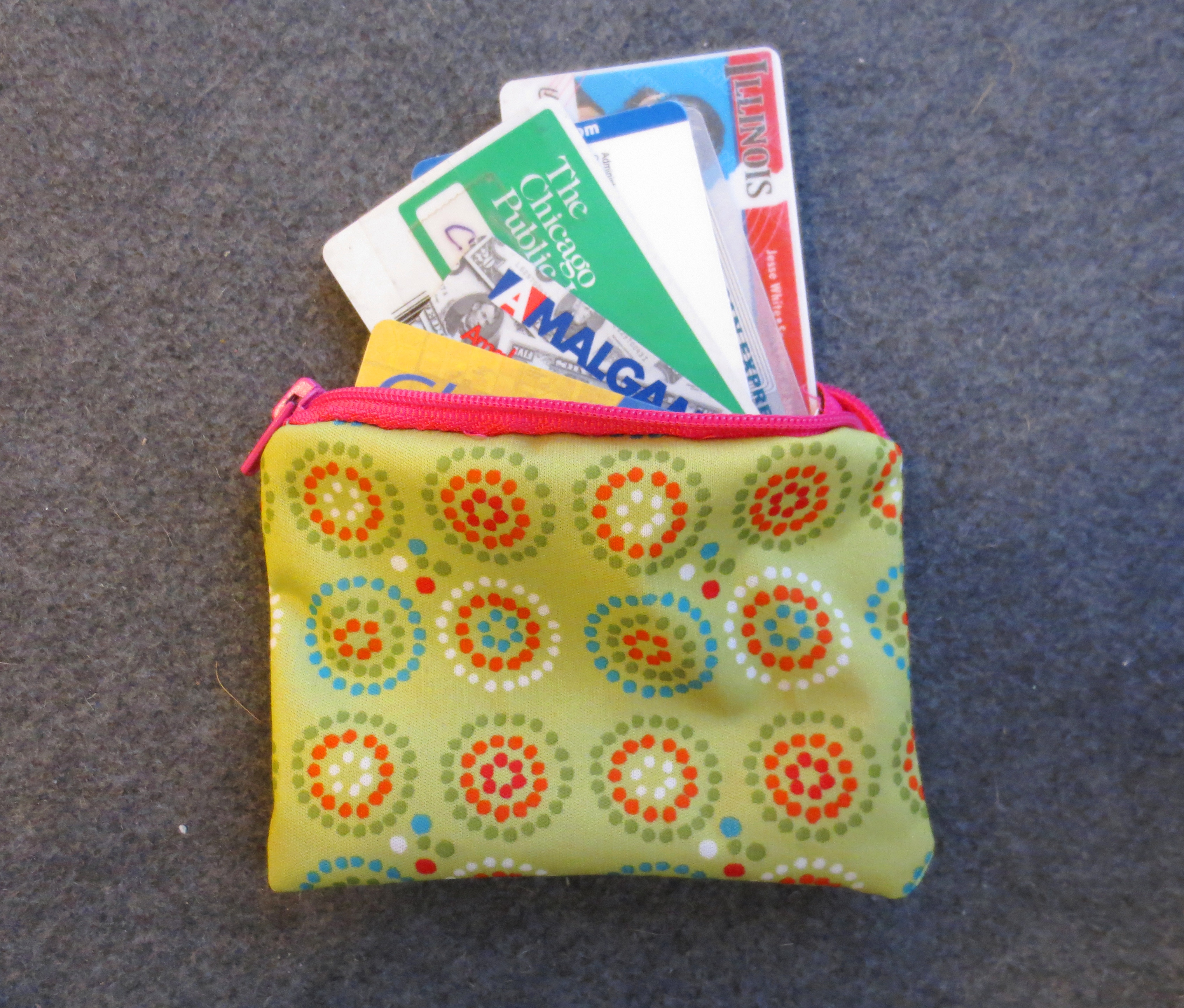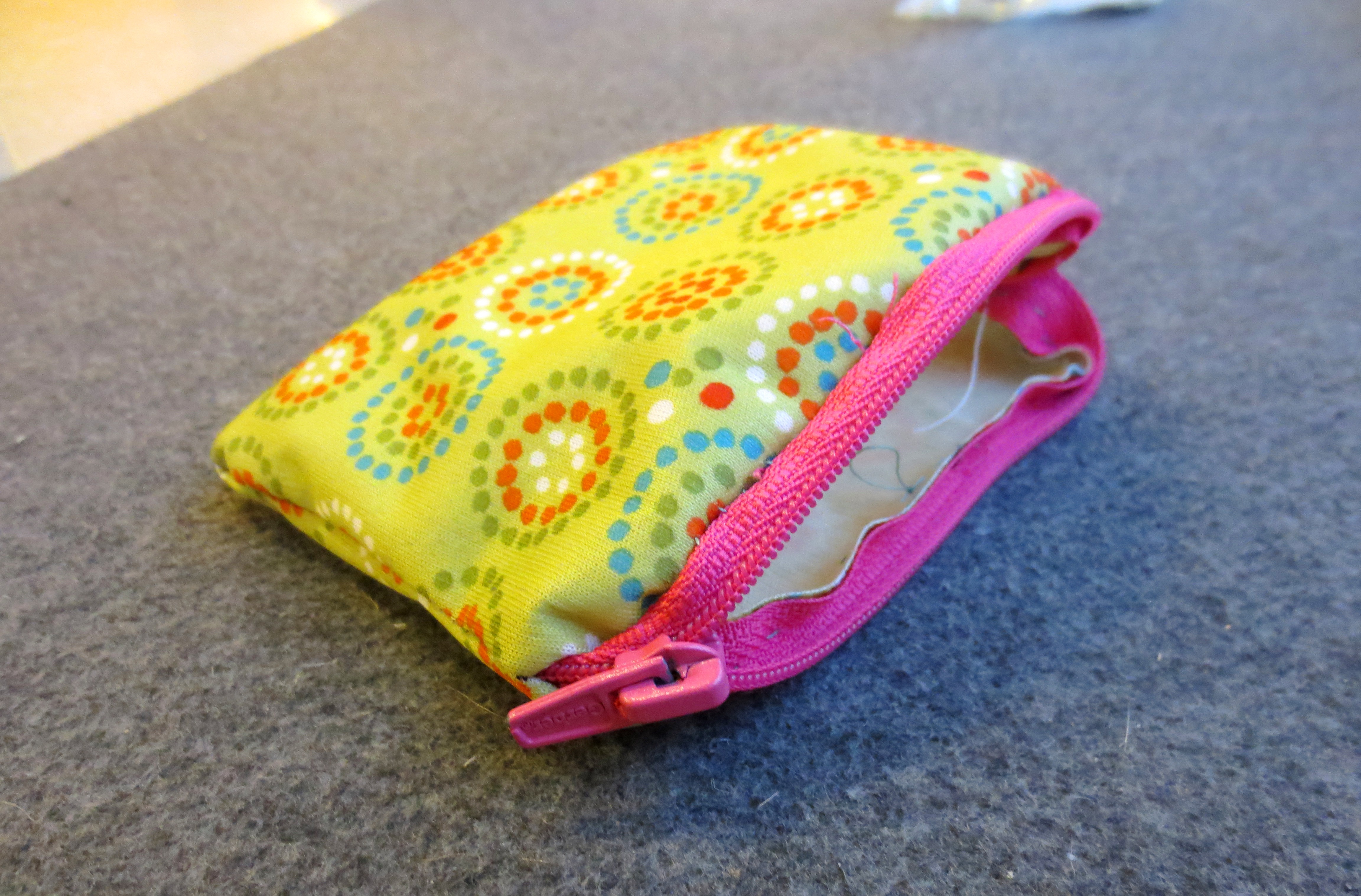 This week, I decided to quit embarrassing myself at the cash register and make a “real” wallet to celebrate my new life. Happily, a proper wallet has only two components: a zipper and a bag.