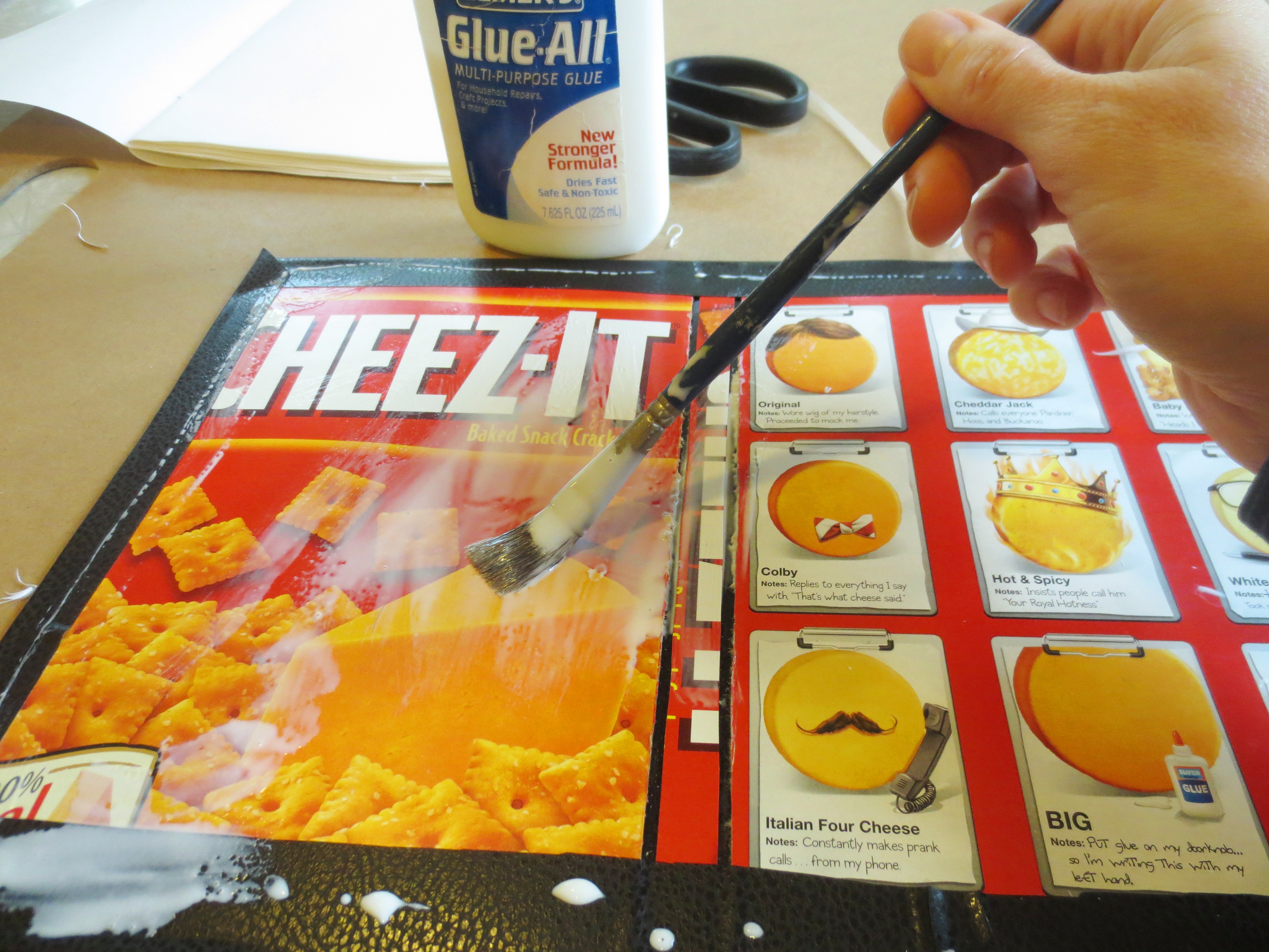 Once you’re happy with your drawings, cut out the new clock face and dot the backside with a glue stick, mainly around the outer edges and near the hole in the middle. Don’t use liquid glue – it will cause unsightly warping on your paper. Press the new clock face in and smooth out the edges.