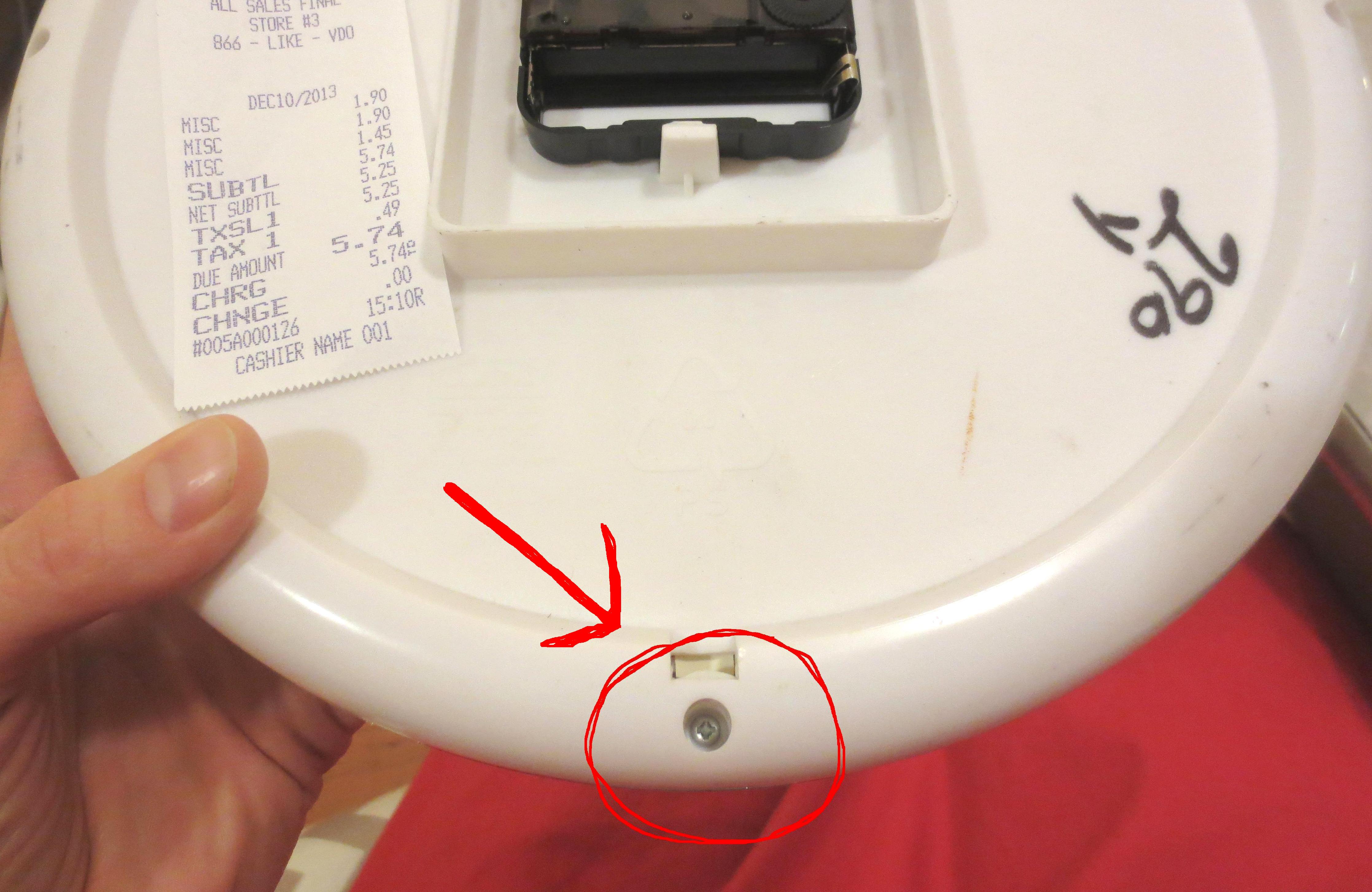 STEP TWO – DISMEMBER YOUR CLOCK: Just for fun, I pulled apart three clocks and was relieved to discover they all basically work the same way. Find the tiny screws that hold the front and back covers together and unscrew them.