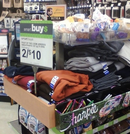 But not just any sweatpants – your husband’s sweatpants! When Scott and I wed five years ago, we committed ourselves to a sweatpants-free marriage. It was a matter of pride that our pants had zippers, buttons, and belt loops – no elastic in sight. That all changed last year when Scott underwent a minor procedure that will prevent us from having any more (of his) children. The doctor instructed him to bring baggy sweatpants to the procedure, since he’d be sporting some ice packs below the belt on the way home. He grabbed a pair from the $5 sweatpants/shirts bin at Walgreens, strategically located between the junk food and the check out:
